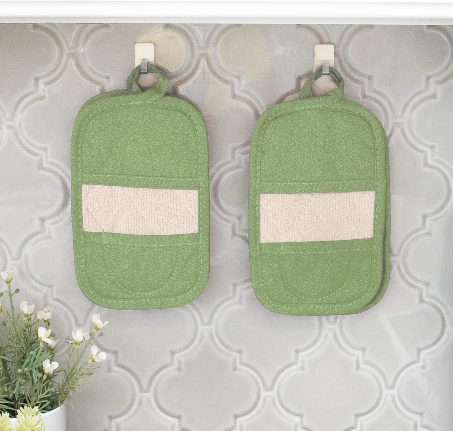Ritz Premium Pot Holders & Heating Pads (4-Pack), 8.5" x 5.5", Heat Resistant, 100% Cotton Terry-Looped Pocket, for Kitchen and Barbeque, Cactus Green