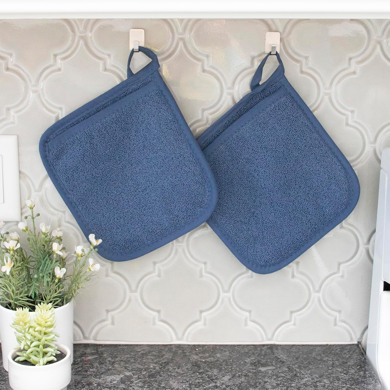 - CONVENIENT HANG LOOP. We know that a busy kitchen requires tools that are always within reach. That's why each pocket mitt comes complete with a handy hanging loop. Hang them by your oven or kitchen island, and you'll always have your trusty mitts right where you need them.