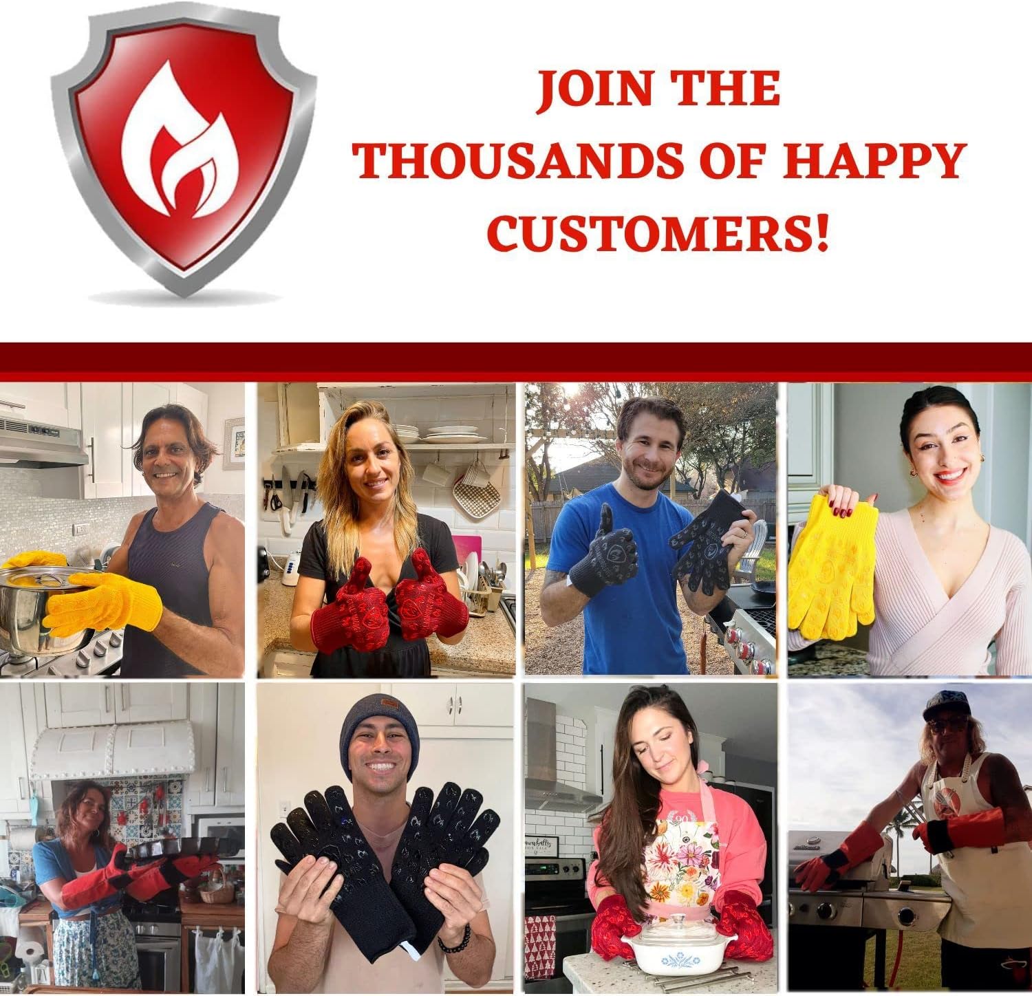 - Versatile - All in one barbecue gloves, oven mitts or pot holders! Enjoy showing off your skills using these as cooking gloves or baking gloves in the kitchen, outdoor grill, camp site, smokers etc. Whether you're a professional chef, avid griller or an amateur home cook, you can count on these gloves to protect you from unwanted burns. These BBQ gloves are the perfect gift for men and women. So get your personal chef, or BBQ lover a gift that shows you care!