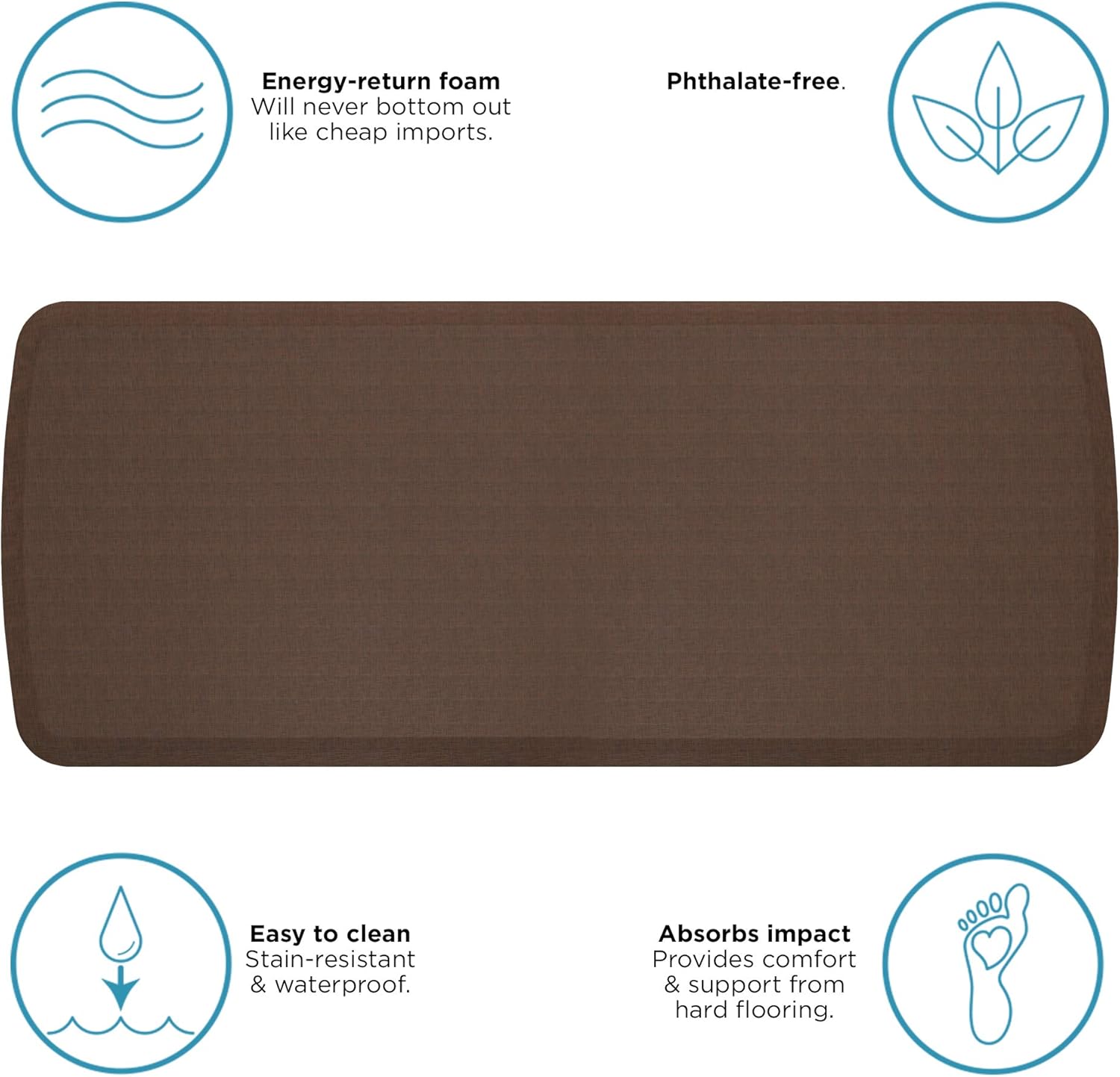- EASY TO KEEP CLEAN: Featuring a stain resistant surface, this chef kitchen anti-fatigue floor standing mat is incomparably easy to keep clean.