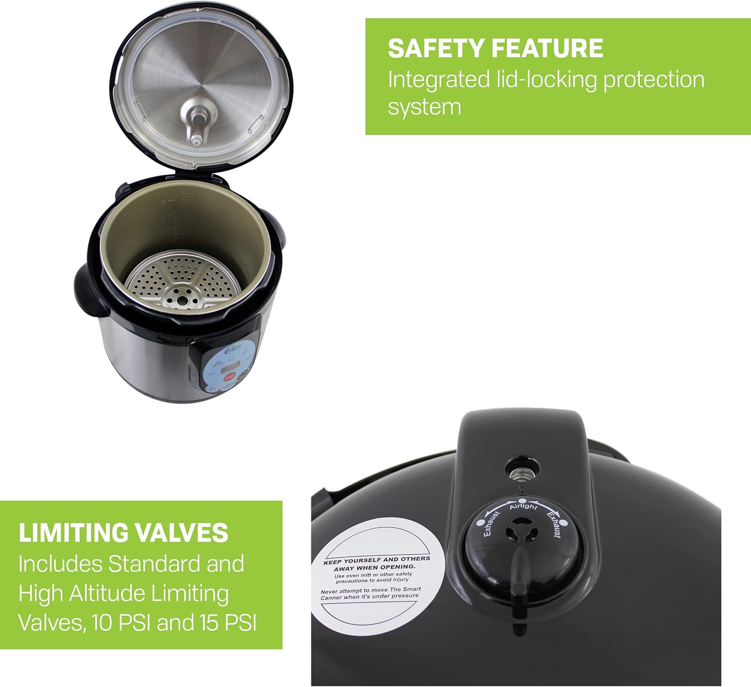 - DIGITAL DISPLAY: The multi-functional digital display features a timer and preset programs to give you the right tools to ensure consistent results when canning fruits, jams, pickles, salsas and more