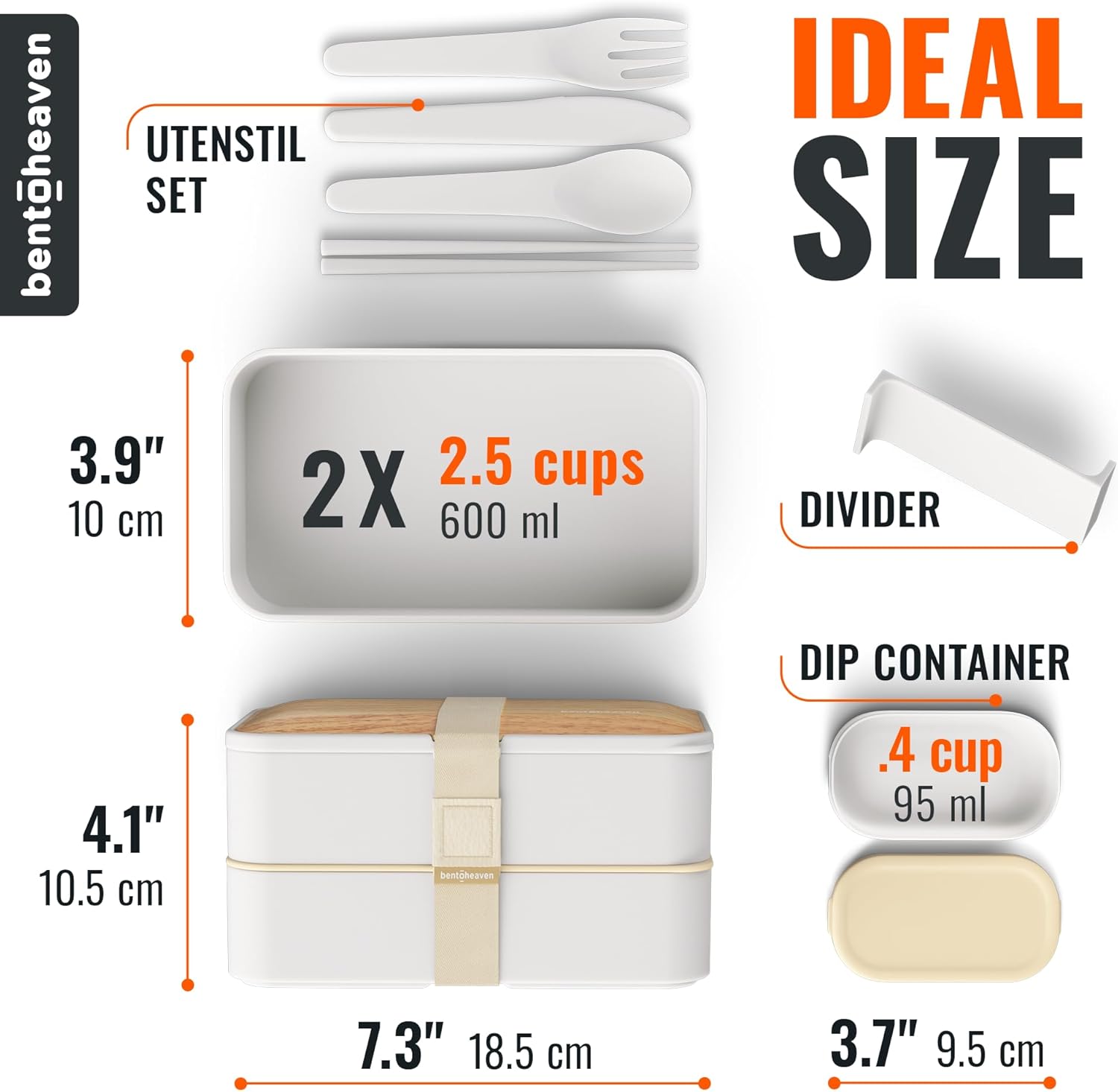 Bentoheaven Premium Bento Box Adult Lunch Box with Compartments for Women & Men, Set of Utensil & Chopsticks & Dip Container, Cute Japanese Kids Bento Lunch Box, Microwavable (Bright Light)