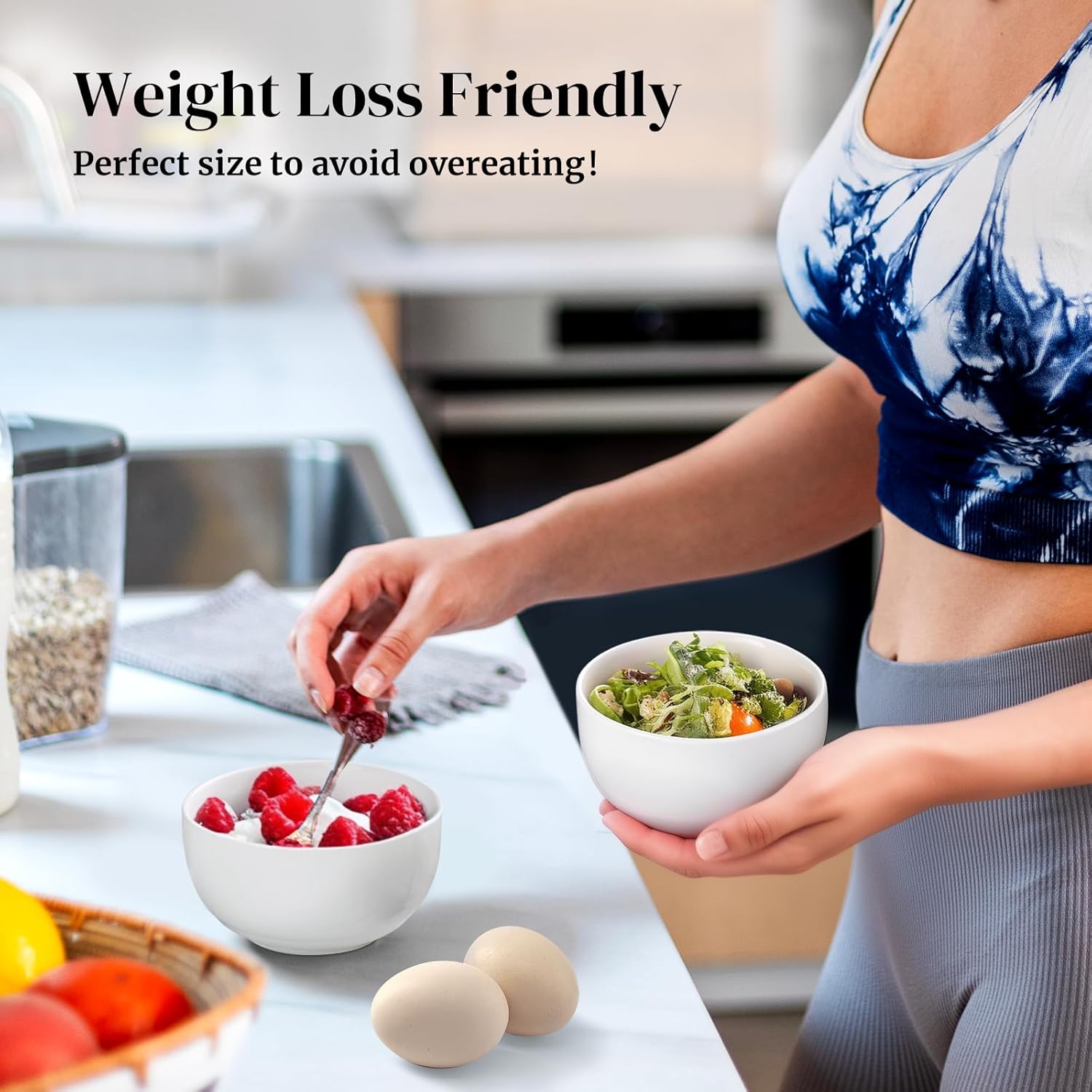 - Super Versatile Small Bowls: With a 4.25-inch diameter, 2-inch height, and 10 oz capacity, these ceramic bowls are perfect for portion control. Ideal for desserts, side dishes, ice cream, rice, nuts, dipping sauces, meal prepping, and more. The size is kid-friendly for easy handling and shallow enough for pets to enjoy their meals comfortably