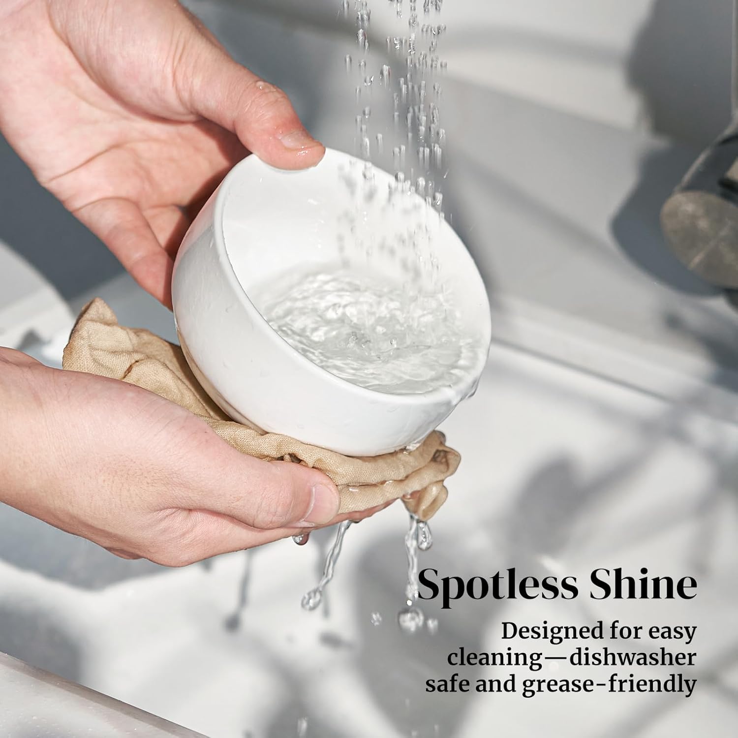 - Effortless Cleaning and Space-Saving: The smooth glaze inside and out, including the base, resists stains and makes cleaning a breeze. Stackable with zero tilt, these bowls help maximize your cupboard space