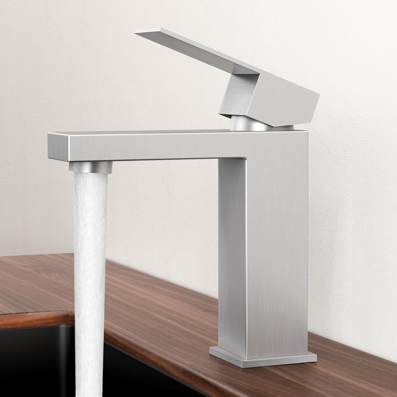 KES Bathroom Faucet Single Handle Modern Bathroom Sink Faucet Single Hole cUPC Certified Stainless Steel Brushed Finish, L3156ALFF12-BS [Fits All States, California Included]