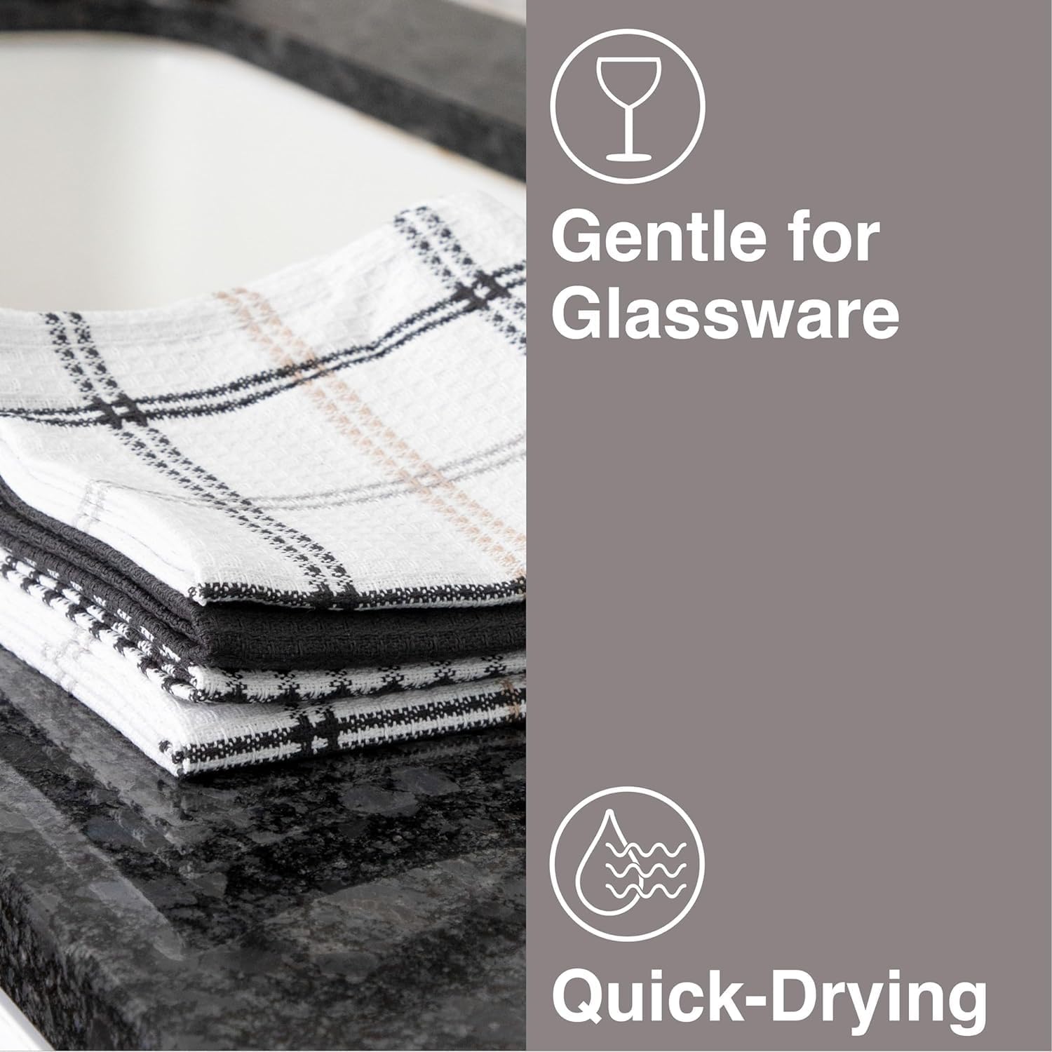 T-FAL Premium Waffle Dish Cloths: Highly Absorbent, Super Soft Long Lasting - 100% Cotton, 12"x13" Flat Waffle Dish Towel for Cleaning & Drying Dishes, (4-Pack), Neutral