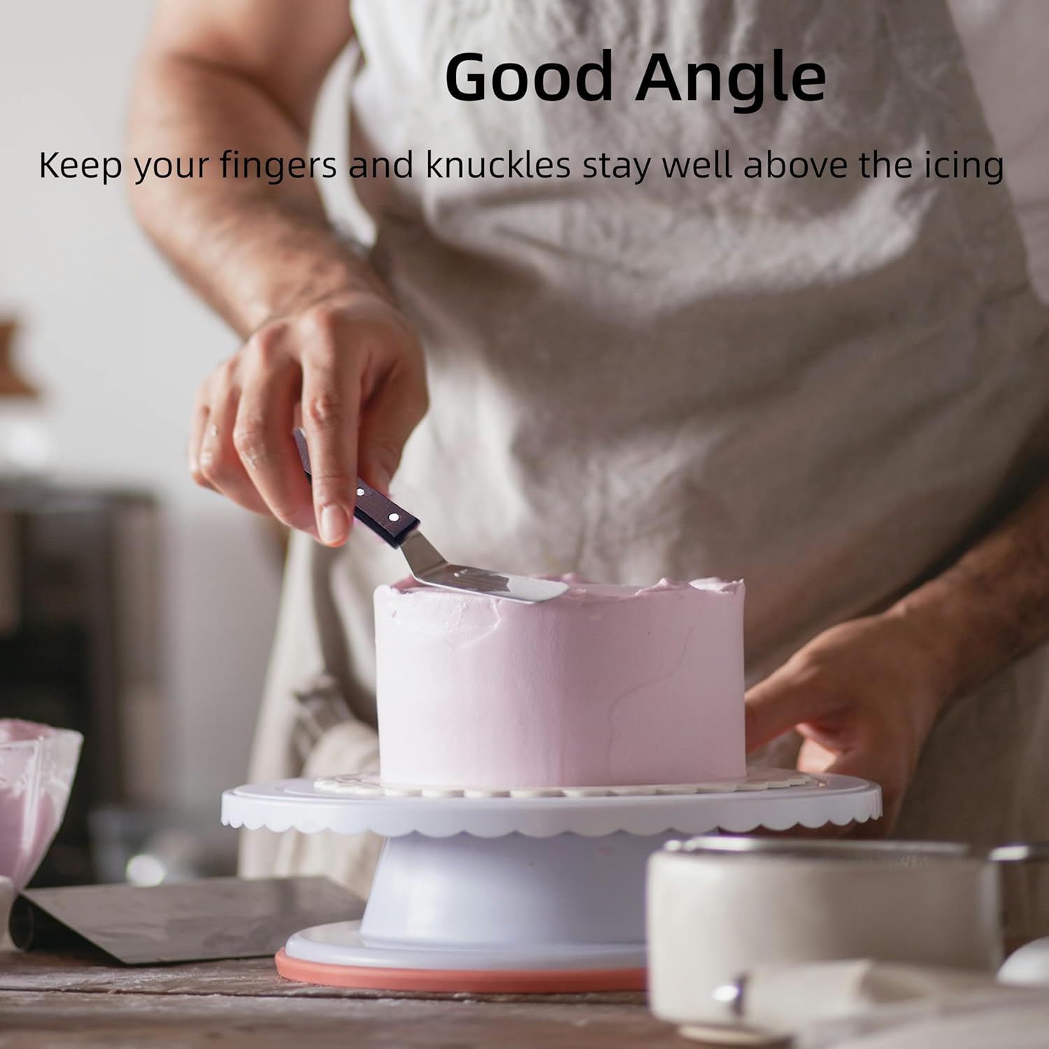 - These offset cake icing spatula set help frost hard to reach areas and keep your hands and finger away from the icing.