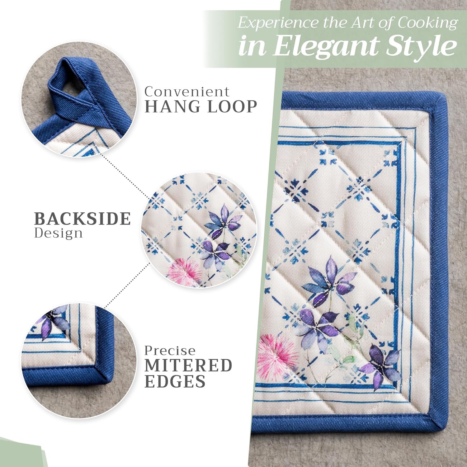 - 100% Quilted cotton: Made from premium quilted cotton, our pot holder ensures safe handling of hot pans or dishes. The soft, durable build provides excellent heat resistance and grip—perfect for everyday cooking and baking needs