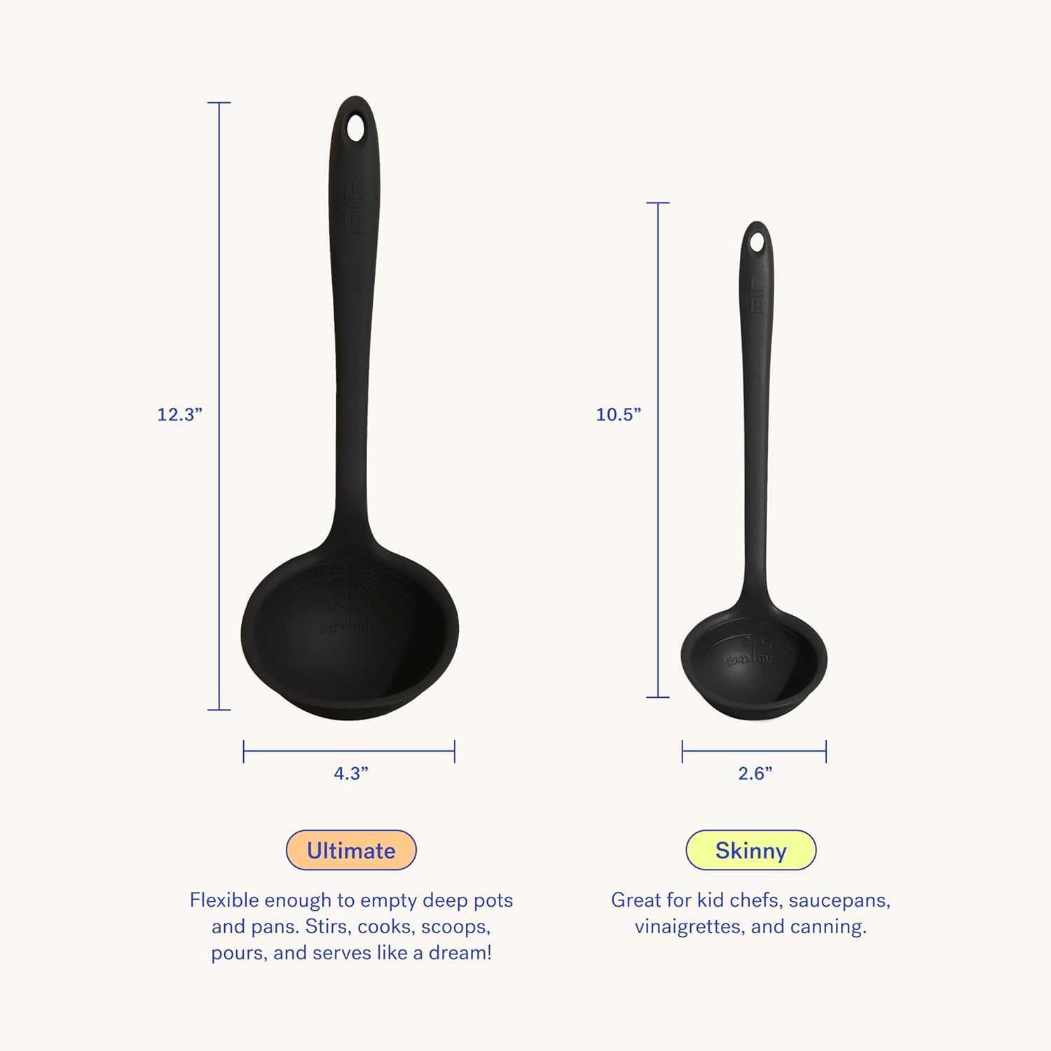- Precision Pouring Ladle: The precision-edged Ultimate Silicone Ladle ensures no spills with its flexible front, ideal for scooping into any pot or pan's corners. Excellent for soups, stews, and more, this ladle with pour spout enhances your kitchen experience