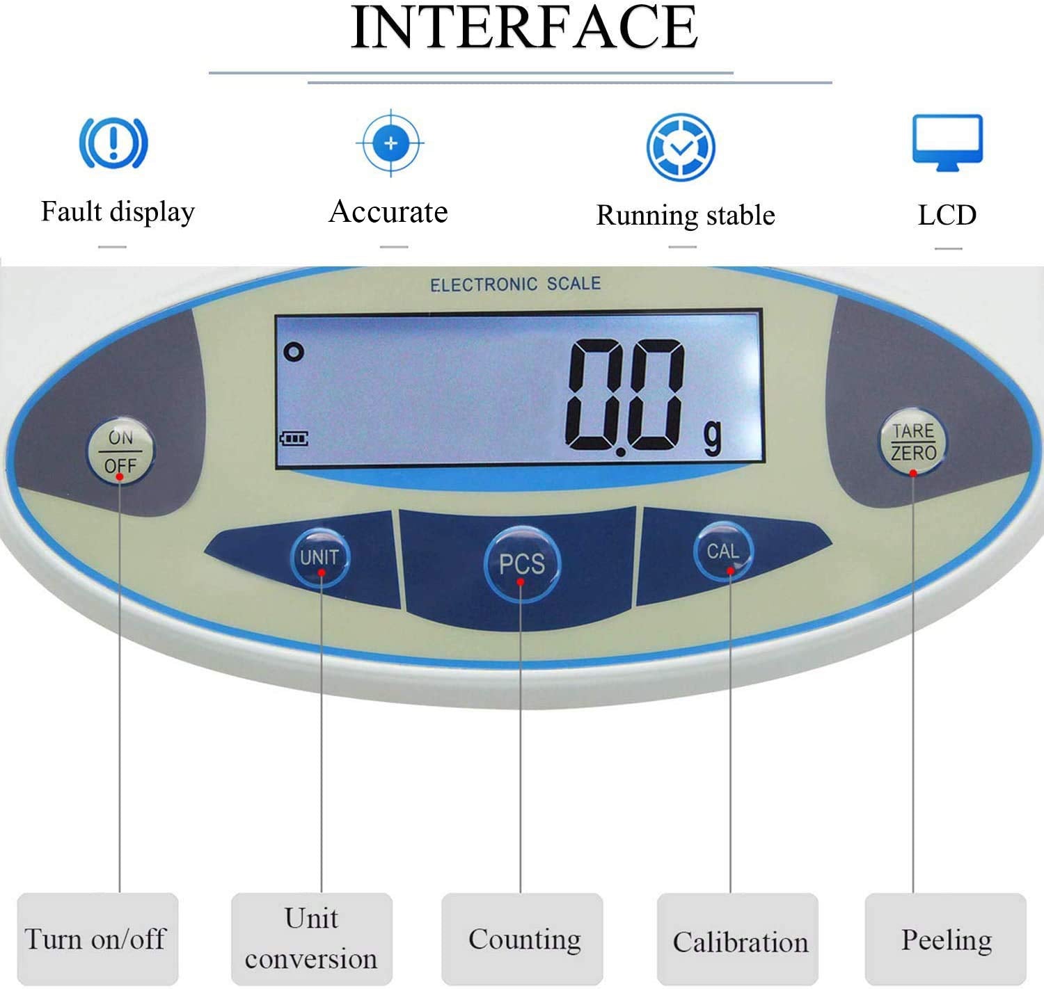 - 0.1g Accuracy, up to 30kg Range-The lab scale has multipe ranges optional, up to 30kg/66lb with 0.1g accuracy. Equipeed with a built-in high sensitivity sensor, the digital scale can get the results quickly and accurately in seconds.