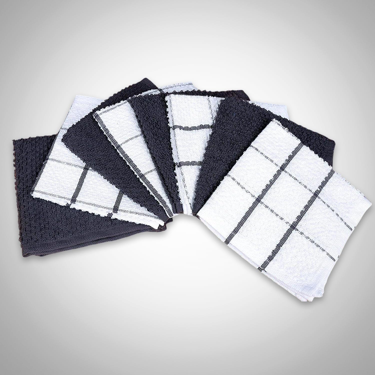 - PACKAGE CONTENT : This set includes 8 high-quality dish cloths—4 solid color dish cloths and 4 checkered pattern kitchen linens, each measuring 12x12 inches, providing a perfect balance of variety for your cleaning needs.