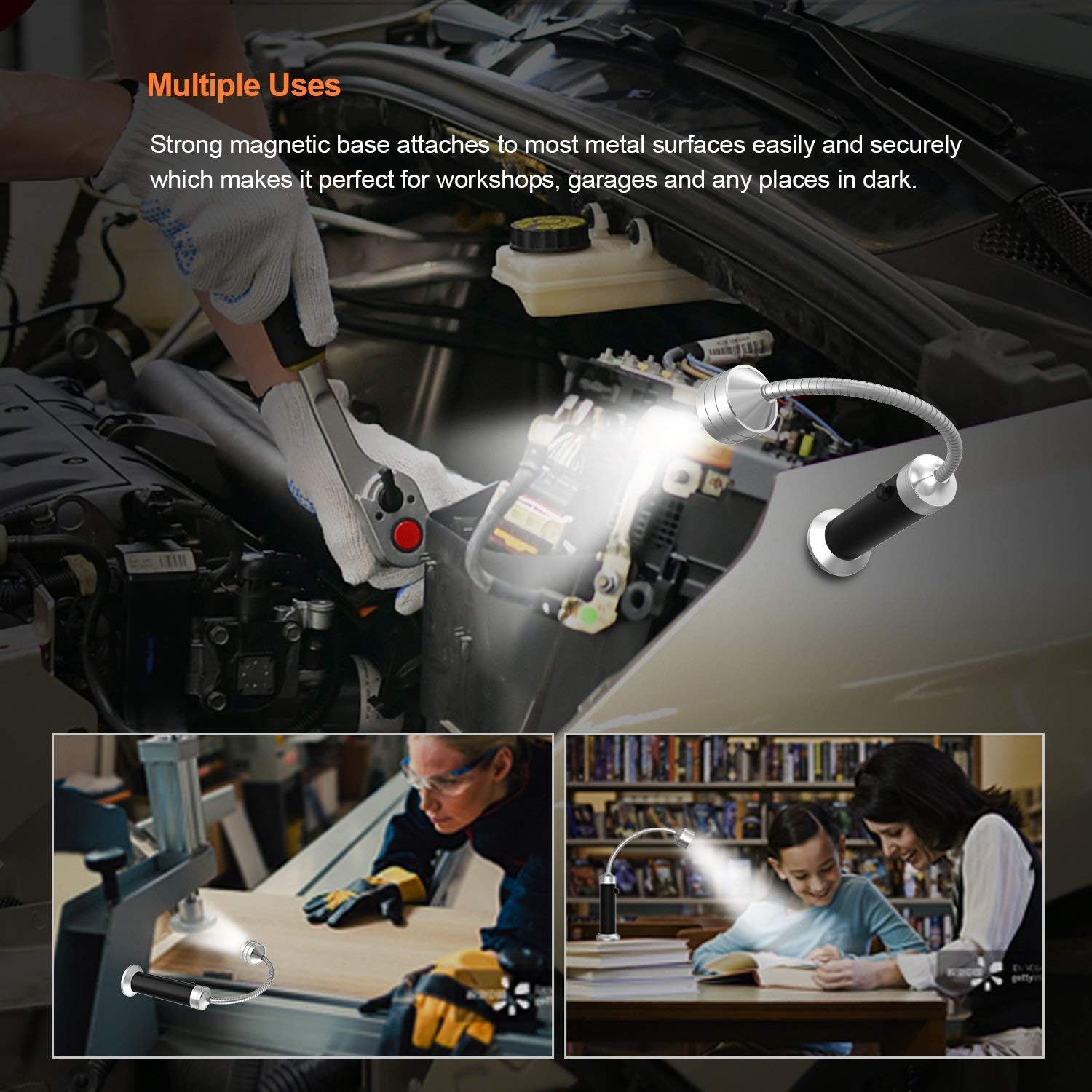 - 【FLEXIBLE GOOSENECK】The 11cm flexible gooseneck can adjust 360 degrees, enabling you to orient the light's beam to exactly where you need it and illuminate every inch of your grill surface