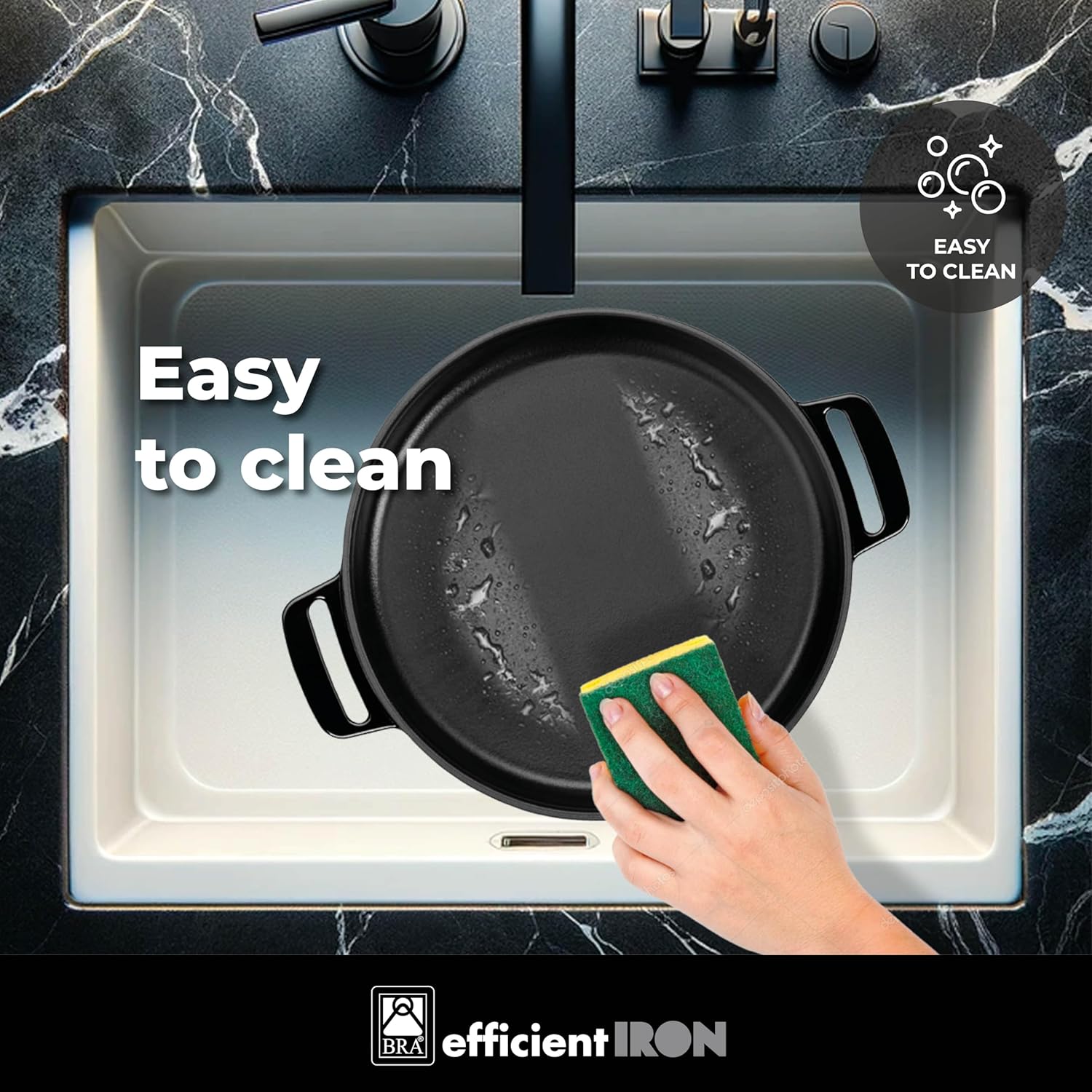 BRA COOKWARE Efficient Iron Round Smooth Grill | 12.6 inches Cast Iron Round Griddle | All Heat Sources Compatible | PFOA Free | Without Non-Stick | Silicon Handle | Non Deformable