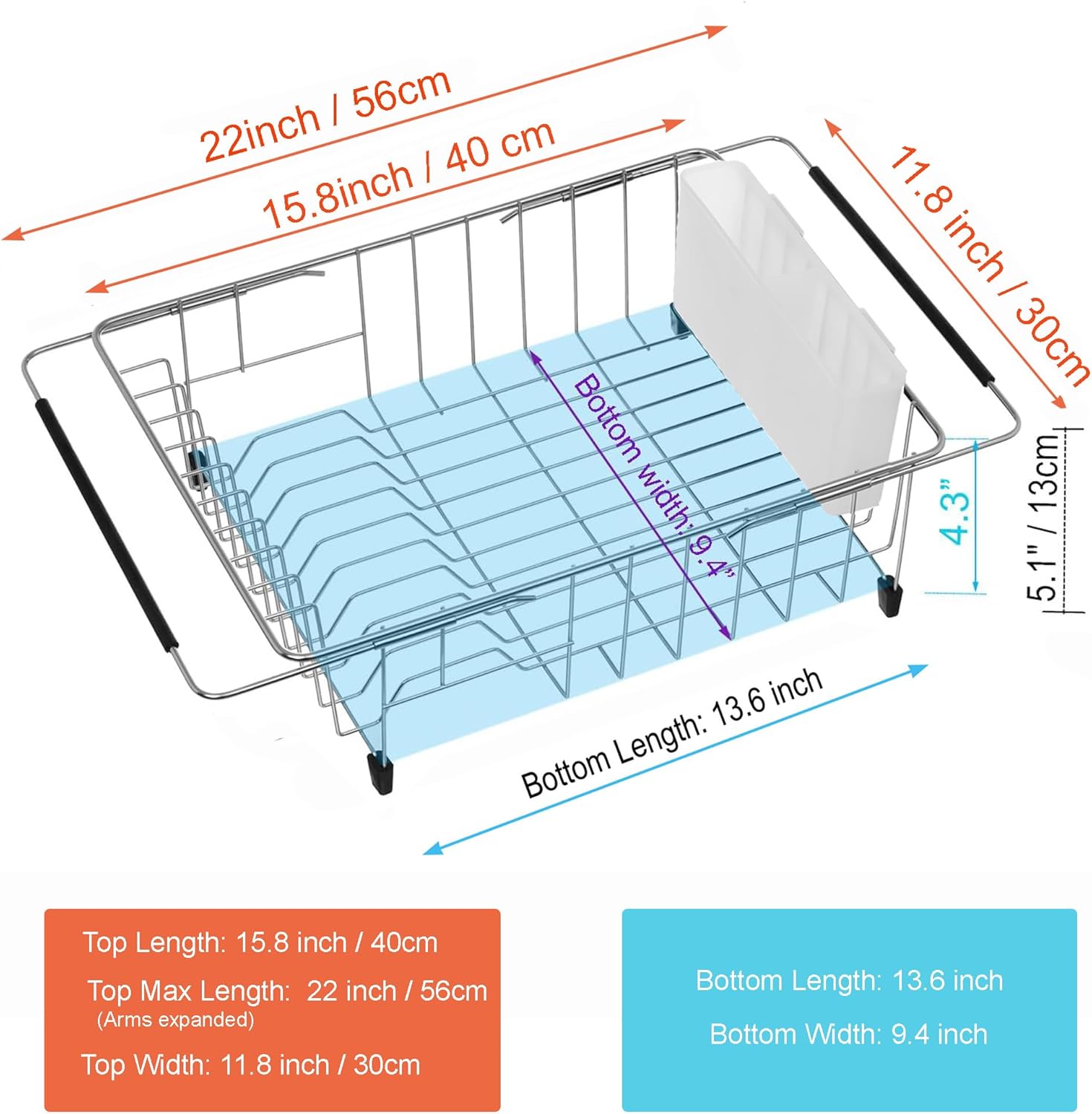 - β EXTENDABLE & SUITABLE for Different Size Sink - The unit (collapsed) measures 15.8"(40cm) L x 11.8" (30cm) W x 5.1"(13cm) H, expands from 15.8" to 22.2" length to make it handy to place over a larger sink, fit your sink which is 16 to 22 inches length.