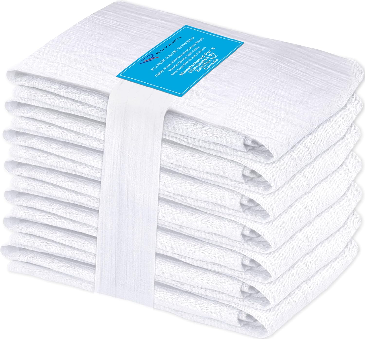 RUVANTI Flour Sack Towels 6 Pack 28x28 Inch, 100% Cotton Tea Towel, Reusable, Machine Washable, Absorbent BarTowels - Dish Cloth Perfect for Drying Dishes & Cleaning - White