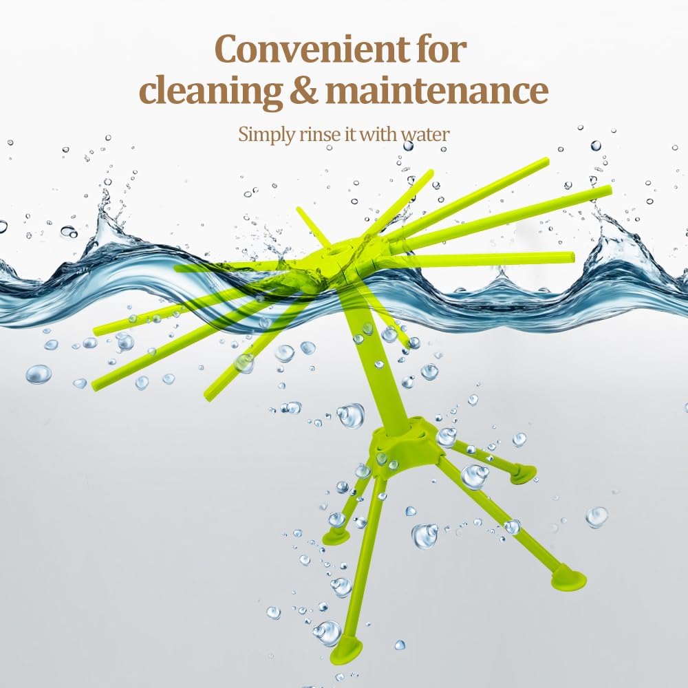 - COLLAPSIBLE PASTA HANGER: 10 hanging arms and 4 feet are very easy to fold down flat for convenient storage. The folded size is 7.8 inches in height and 3.5 inches in width.