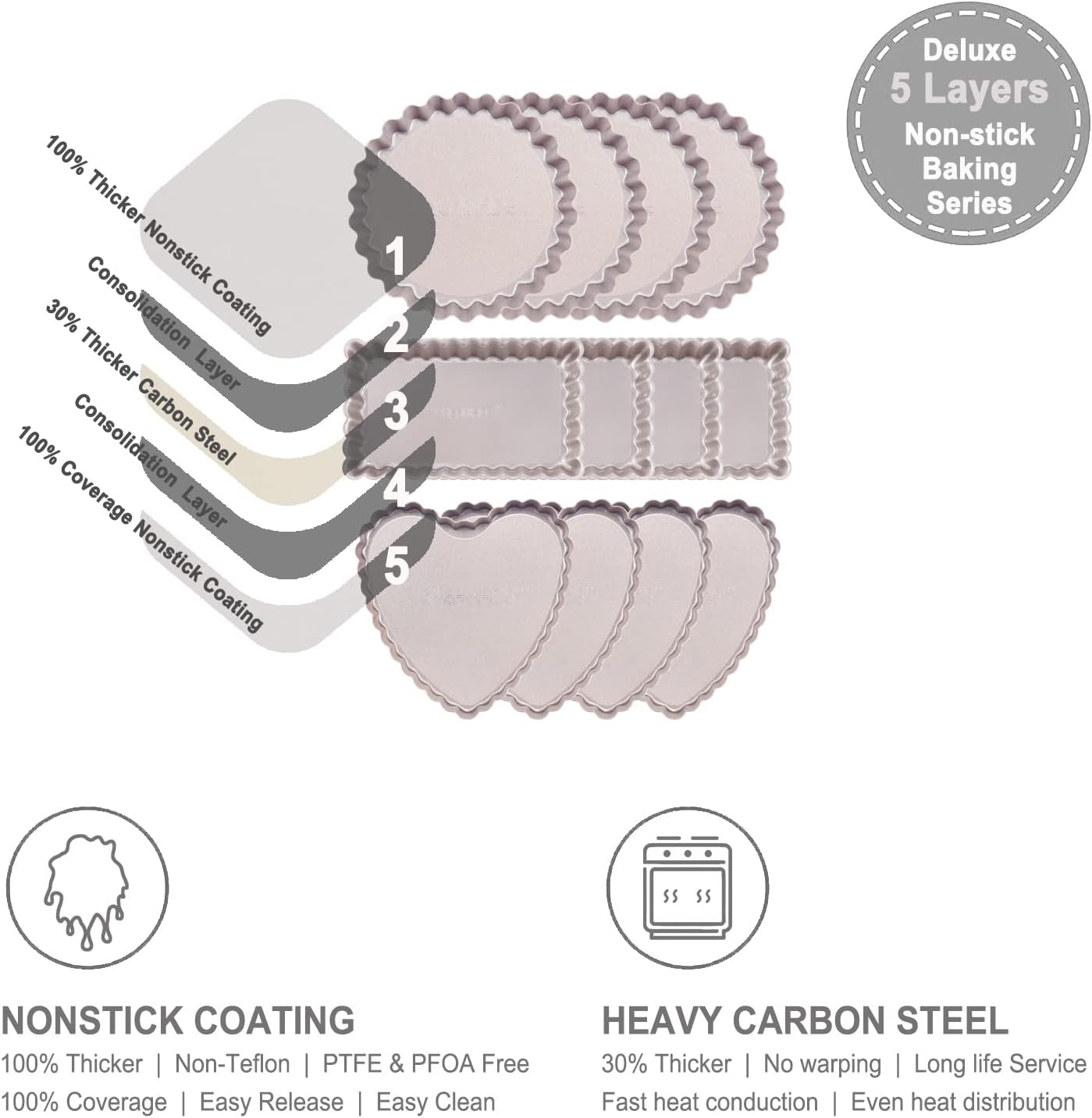 CHEFMADE Mini Tart Pan Set, 4-Inch 4Pcs with Removable Loose Bottom Non-Stick Heart-shaped Quiche Bakeware for Oven and Instant Pot Baking (Champagne Gold)