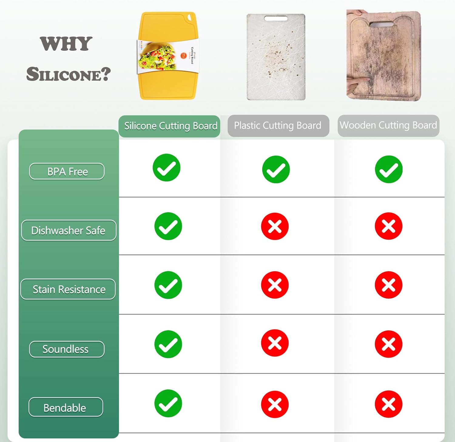 - 【THICK AND FLEXIBLE DESIGN】: Non-Stick & Non-Toxin Flexible Silicone Cutting boards, flexibility and durability allows for easy transfer from chopping to bowl and makes sure that you won't cut through our cutting boards and that they will not wear out as quickly or easily as the others.