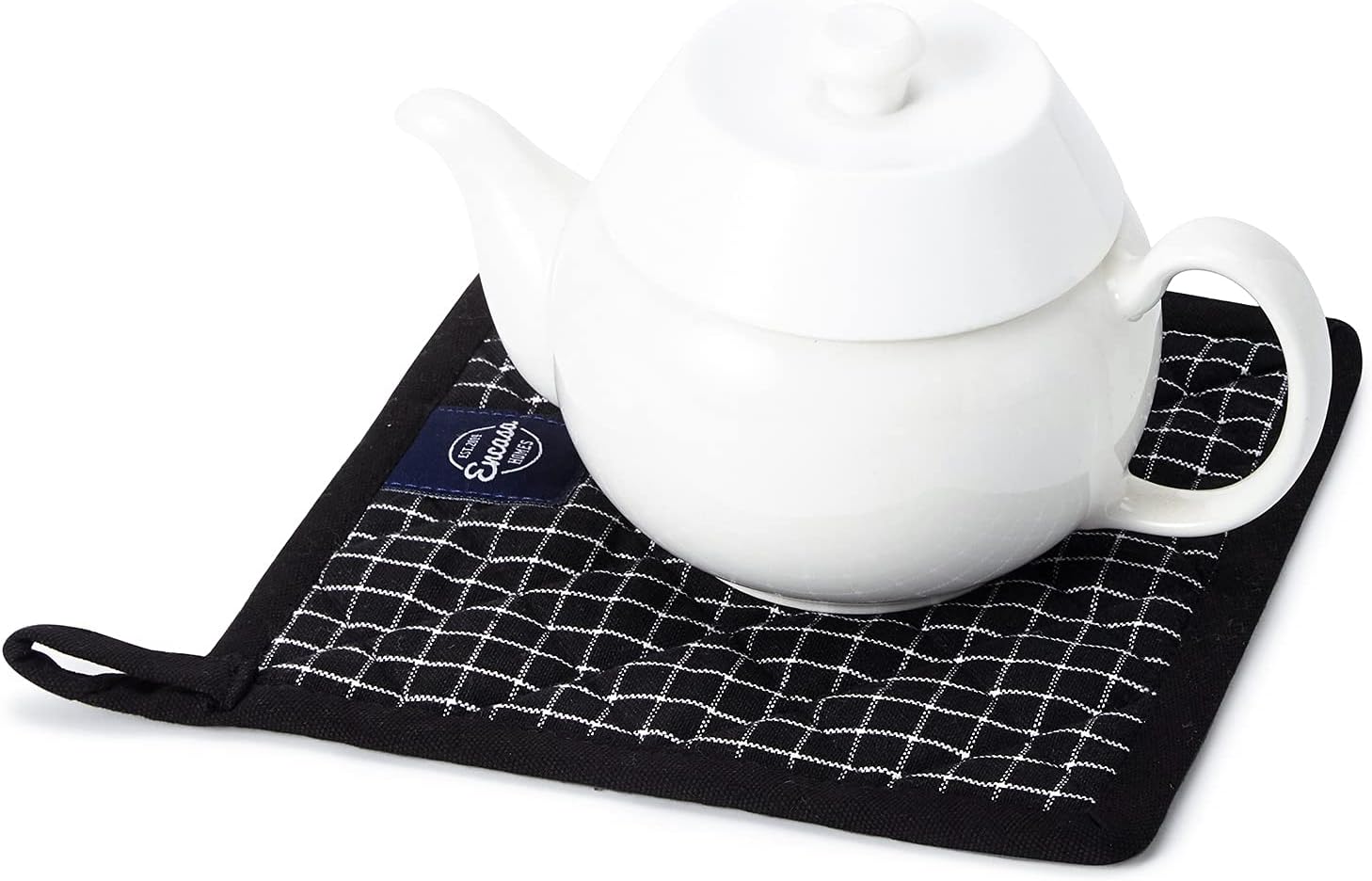 Encasa Homes 8 inches Oven Microwave Potholders (2 pc Set) for Kitchen Cooking & Baking - Heat Resistant, Thick & Safe, Protection of Hands from Hot Utensils - Butcher Checks Black