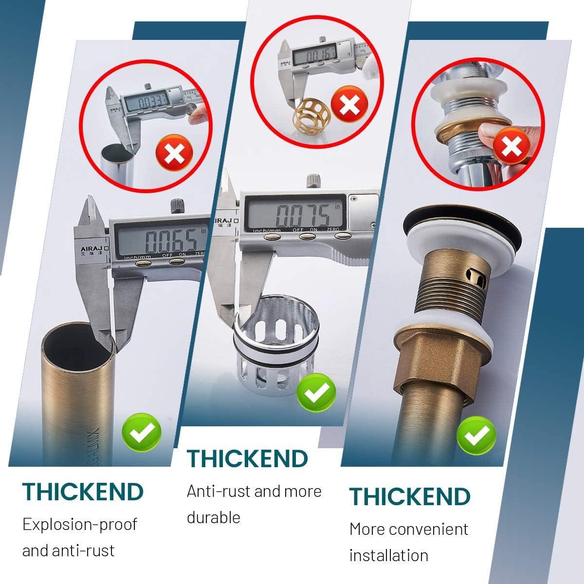 Antique Brass Pop UP Drain, Bathroom Vessel Lavatory Vanity Faucet Sink Stopper, Built-in Anti-Clogging Strainer, Fits Standard American Drain Hole(1-1/2" to 1-3/4"),Without Overflow RWF082S