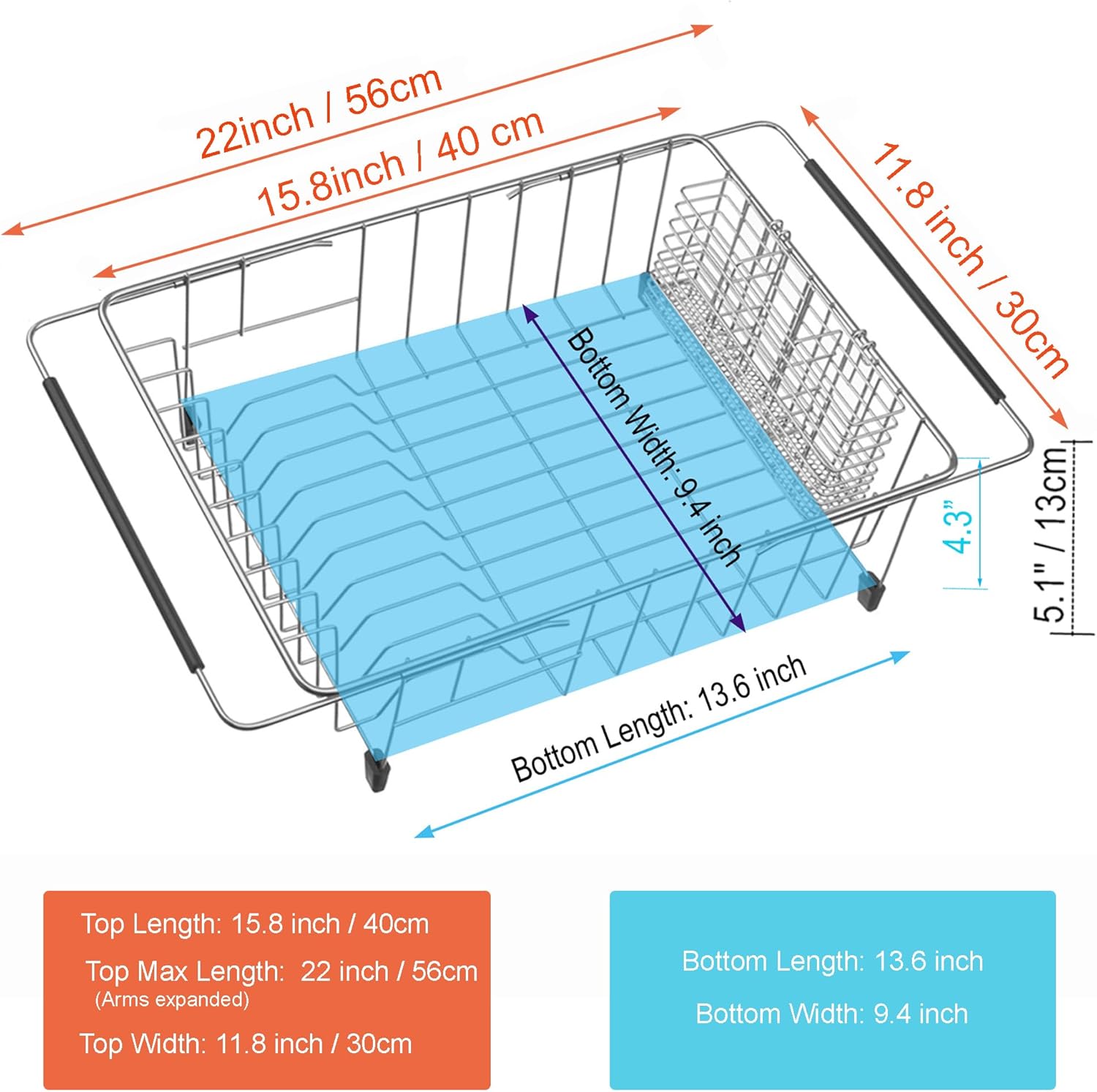 - β EXTENDABLE & SUITABLE for Different Size Sink: The unit (collapsed) measures 15.8"(40cm) L x 11.8" (30cm) W x 5.1"(13cm) H, expands from 15.8" to 22.2" length to make it handy to place over a larger sink, fit your sink which is 16 to 22 inches length.
