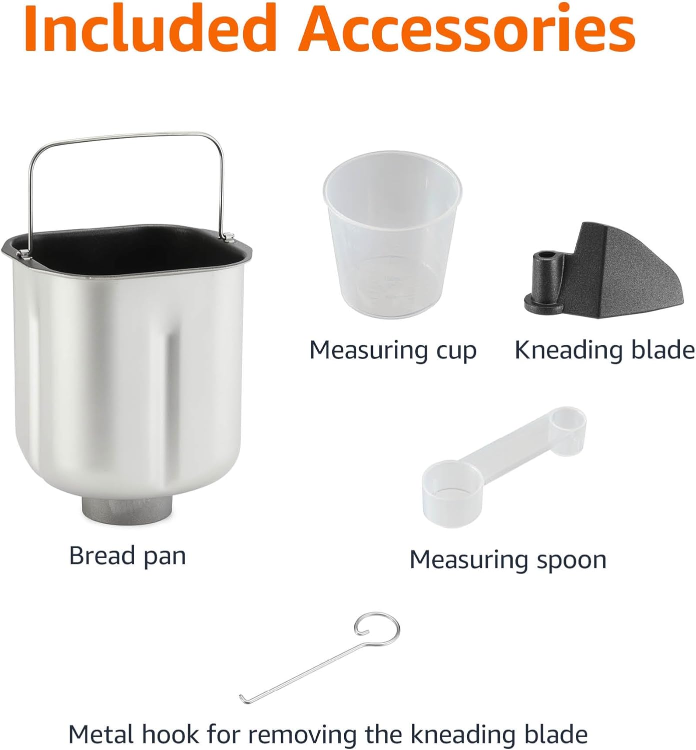 Amazon Basics Programmable Bread Maker, 2 Pound Non-Stick Automatic Bread Making Machine, 14 Settings for Breads, Doughs, Gluten-Free Options and More, LCD Display, White