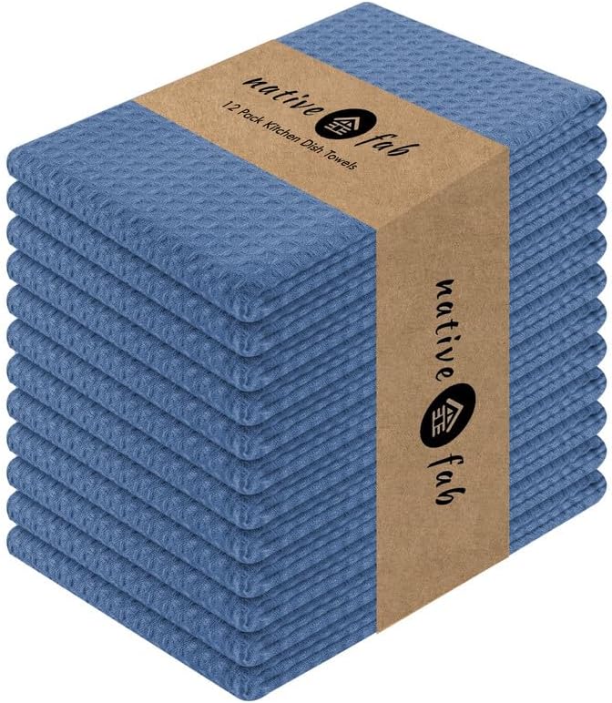 Native Fab 100% Cotton Kitchen Towels - 12 Pack, 16"x26", Absorbent, Quick-Dry, Durable, Washable Tea Towel with Hanging Loop - Cleaning Dish Towels for Home, Restaurant, Bar, Everyday Use, Light Blue