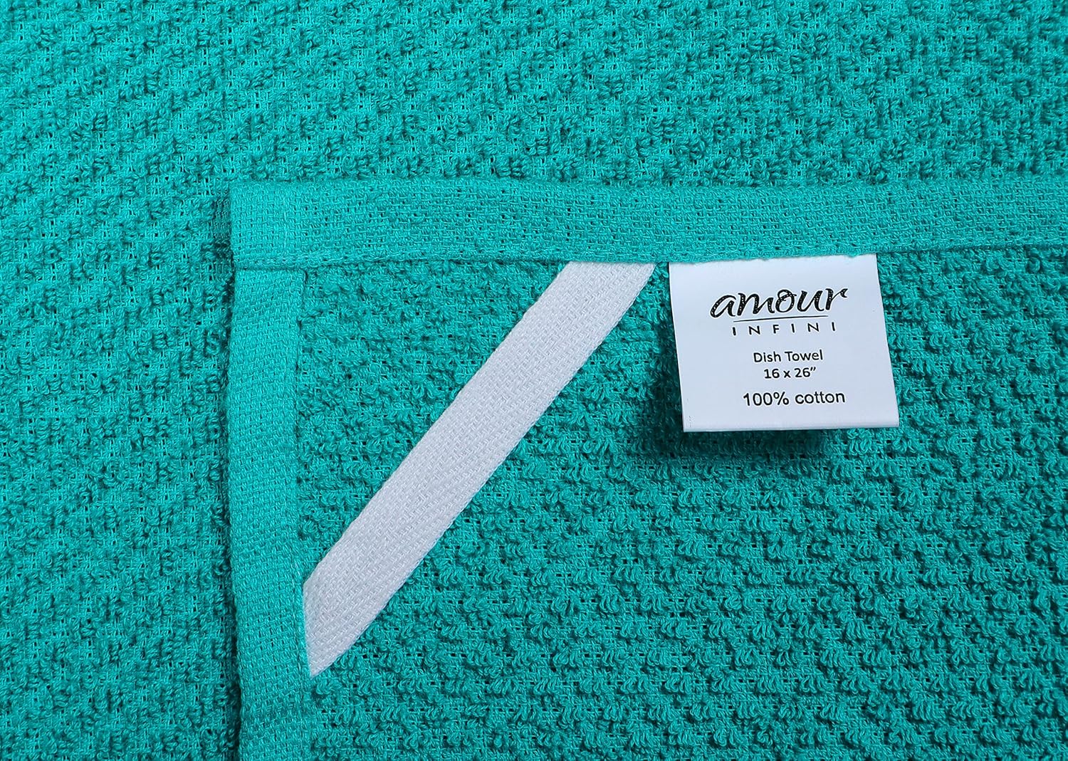 AMOUR INFINI Kitchen Towels Pack of 4 - Absorbent, Quick Drying Premium Cotton Tea Towel - Kitchen Linens 16x28 Inch Dish Towels with Hanging Loop (Turquoise)