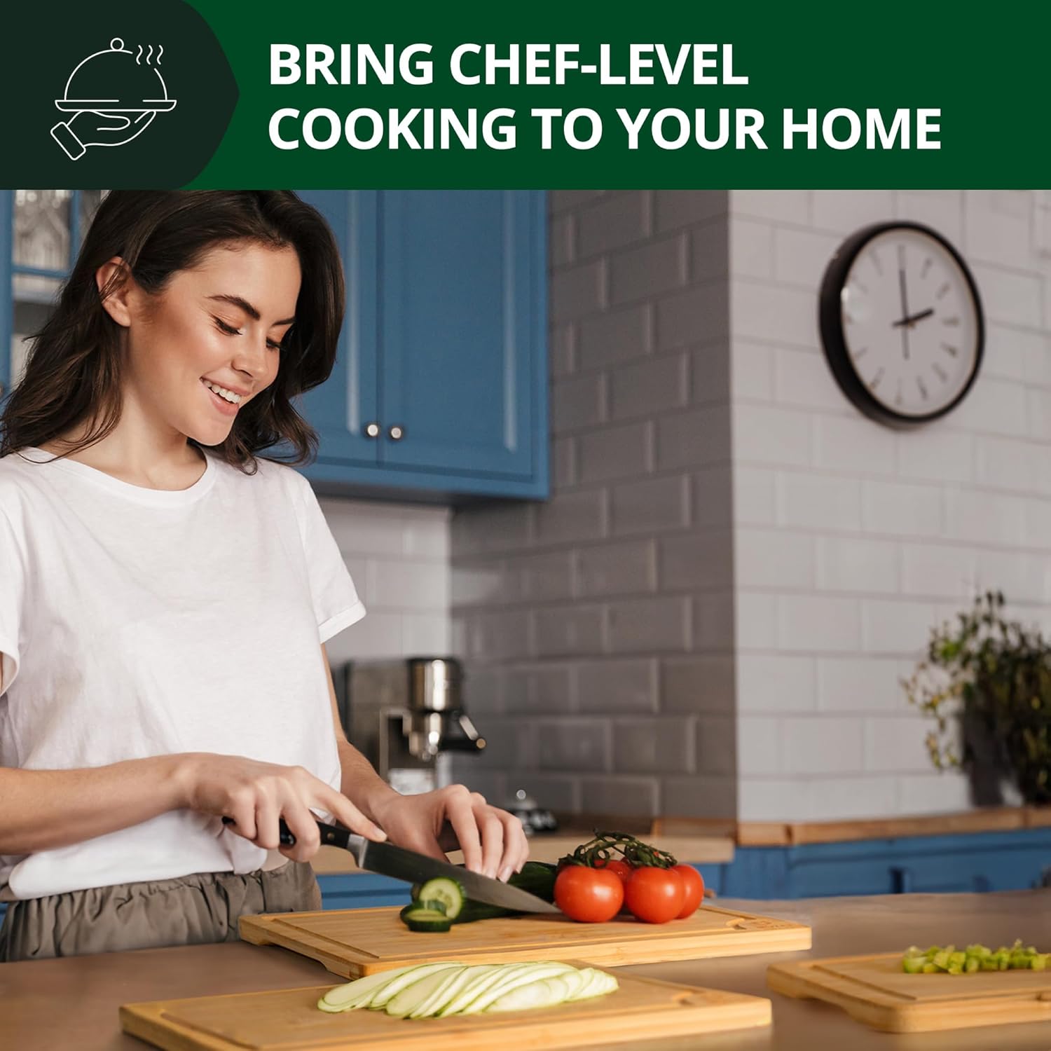 - ππ ππππ πππππππ πππ ππππππ ππ: Our professional grade cutting boards feature deep juice grooves to catch liquid from meats and fruitsβkeeping your counters clean and chopping boards spill-free for easy transfers.