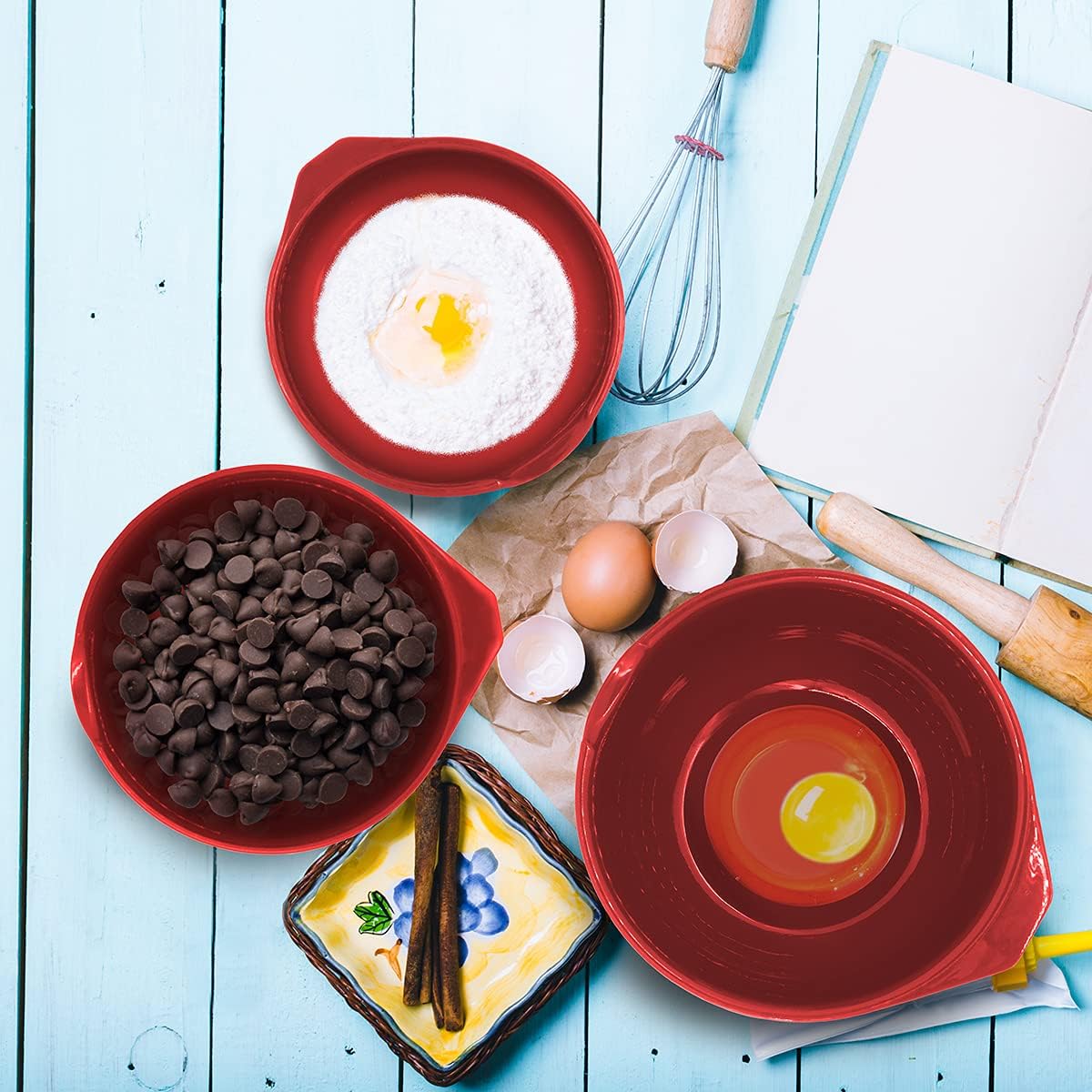 GLAD Mixing Bowls with Pour Spout, Set of 3 | Nesting Design Saves Space | Non-Slip, BPA Free, Dishwasher Safe Plastic | Kitchen Cooking and Baking Supplies, Red