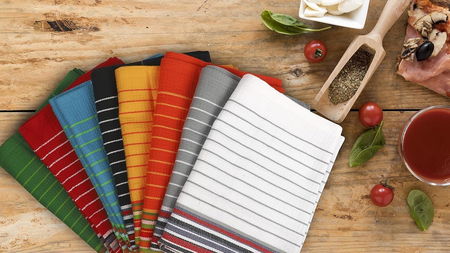 Urban Villa Kitchen Towels, Premium Quality, Cotton Dish Towels,Mitered Corners,Ultra Soft (Size: 20X30 in),Multi Color Waffle Stripes, Highly Absorbent Bar Towels & Tea Towels - (Set of 8)