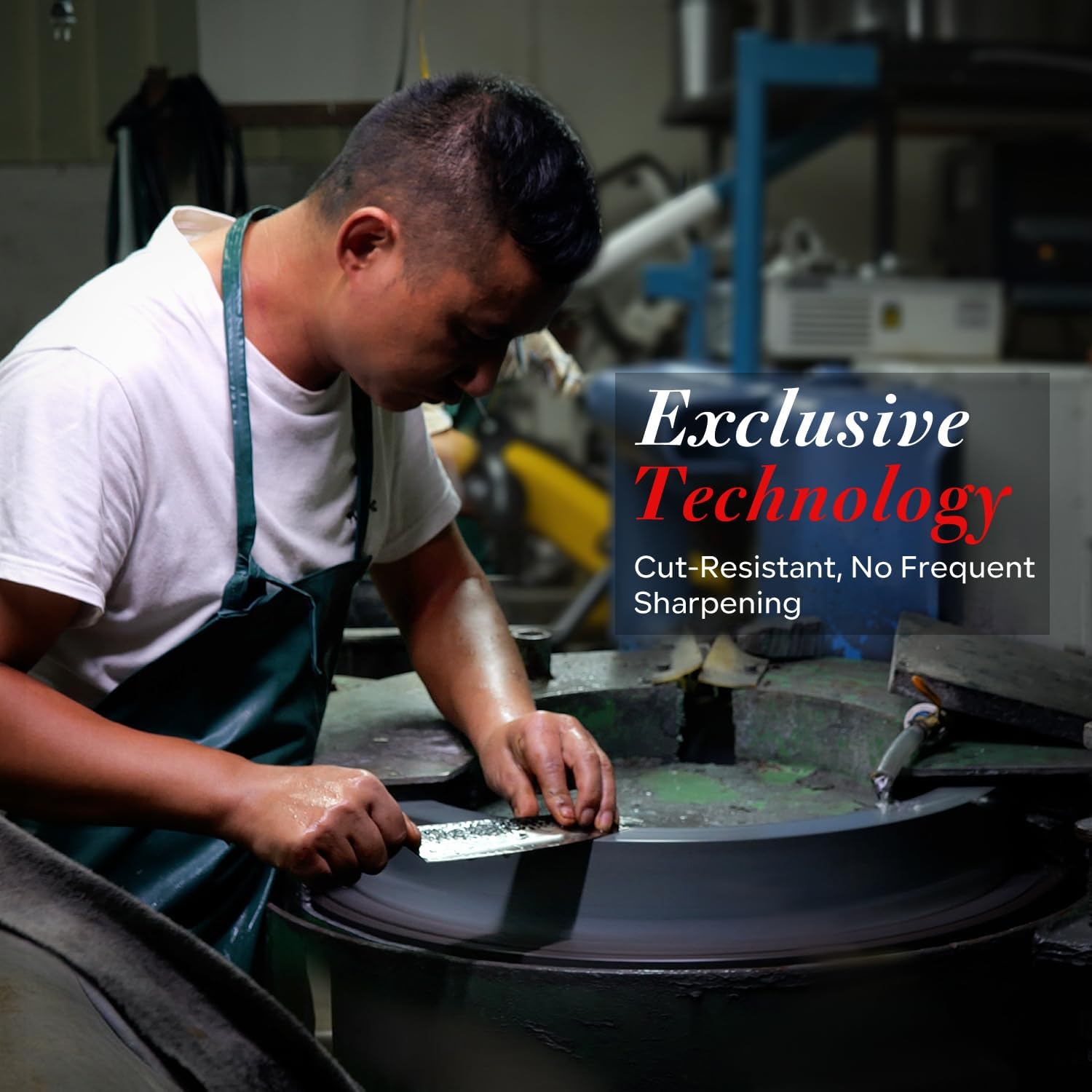 - FAMCÜTE Expertise - Our kitchen cleaver knife are made from 5 layers of 9CR18MOV steel, combining traditional forging techniques with advanced technology. Each sharp knife undergoes a meticulous 60-day production process, including precise quenching, vacuum nitriding, and enhanced oxidation-resistant anti-rust technology, ensuring every cut remains sharp and durable.