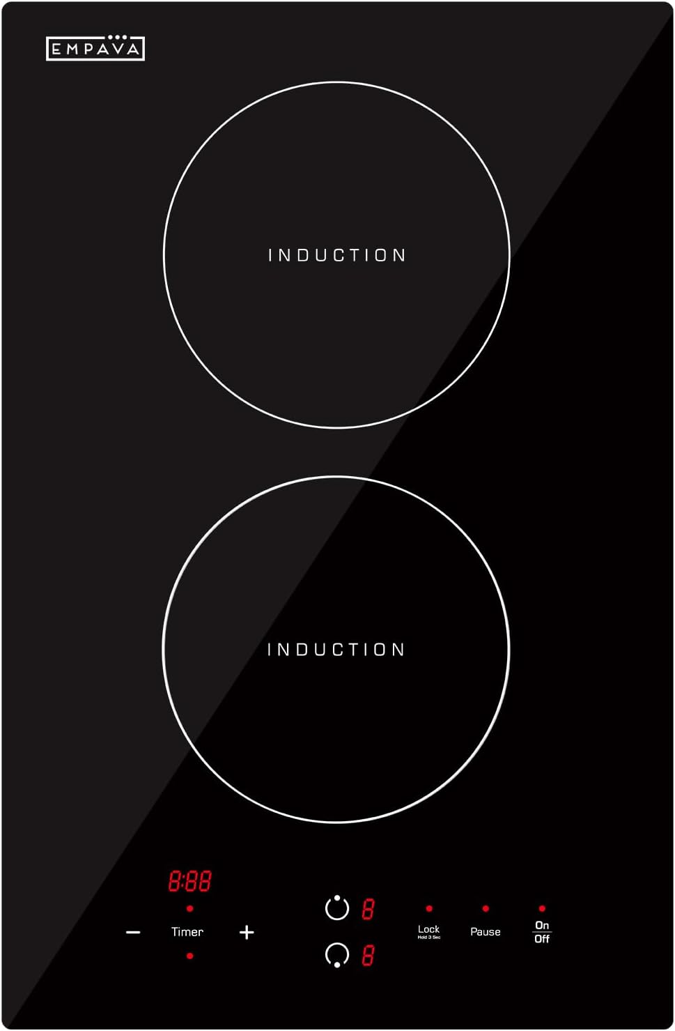 Empava Electric Stove Induction Cooktop Vertical with Dual Burners Vitro Smooth Surface 120V, 12 Inch, Black Ceramic Glass
