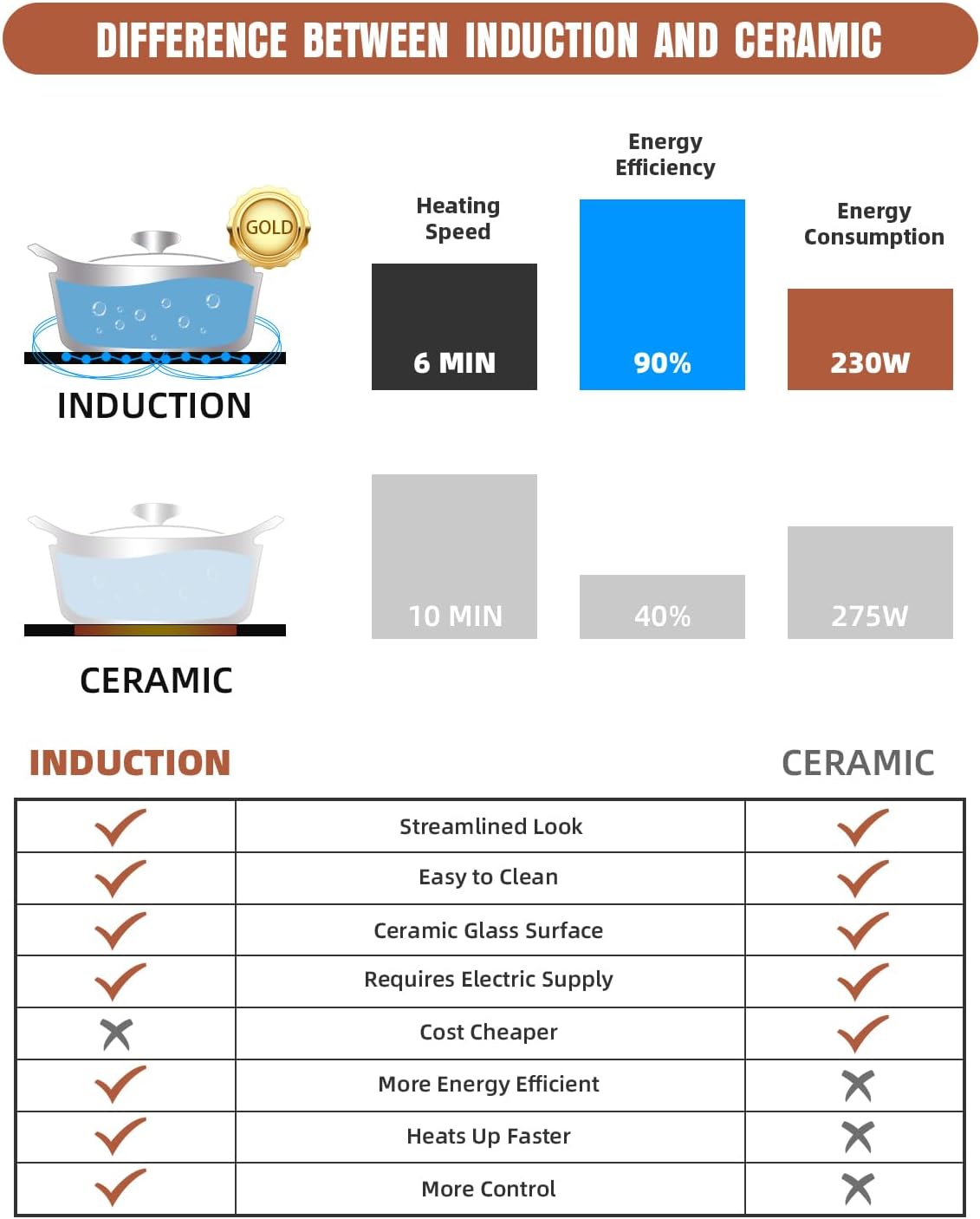 - 1-99 minutes timer mode will help you to cook perfectly and accurately. Our induction cooktop can control the cooking time precisely for you. You can set induction cooktop to turn the cooking zone off automatically after your setting time is up, rest and enjoy the rare leisure time!