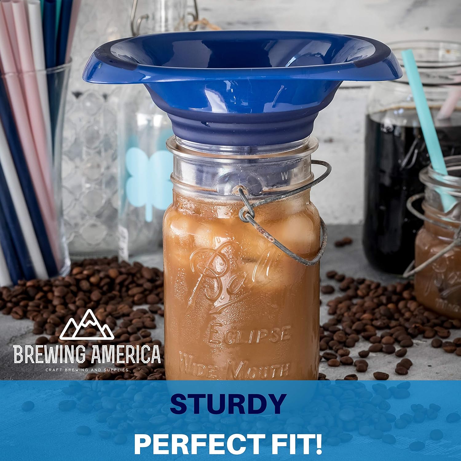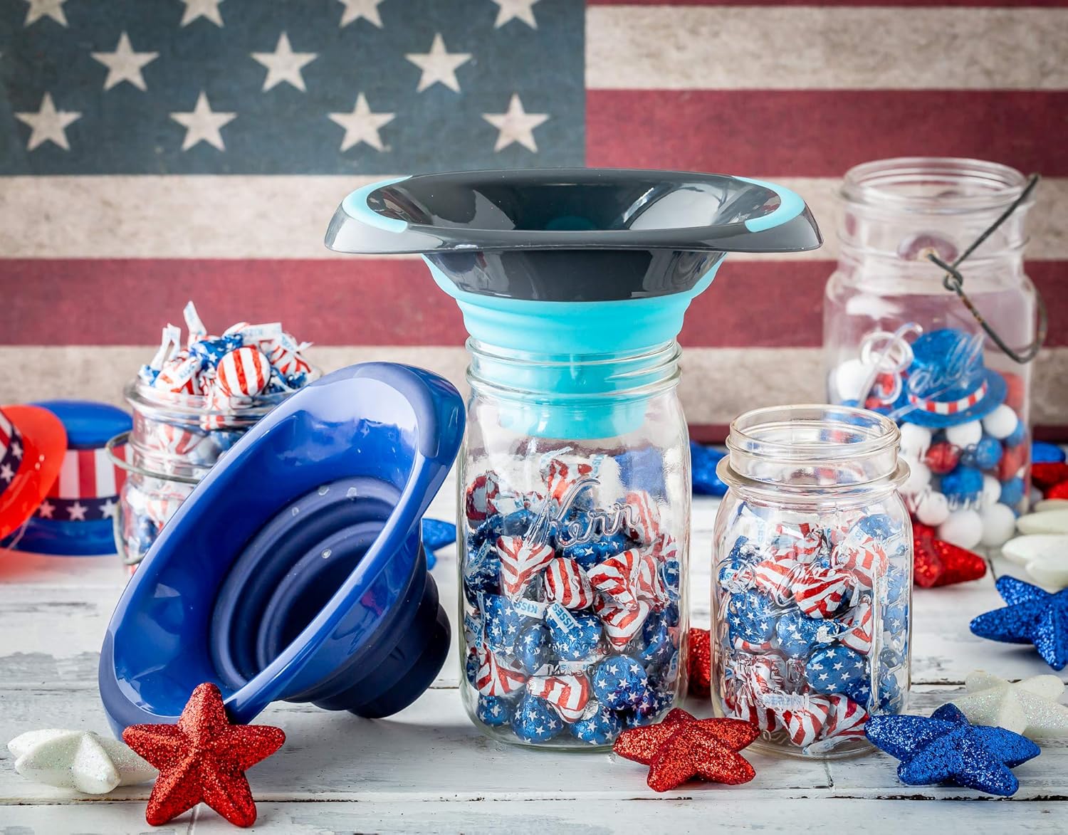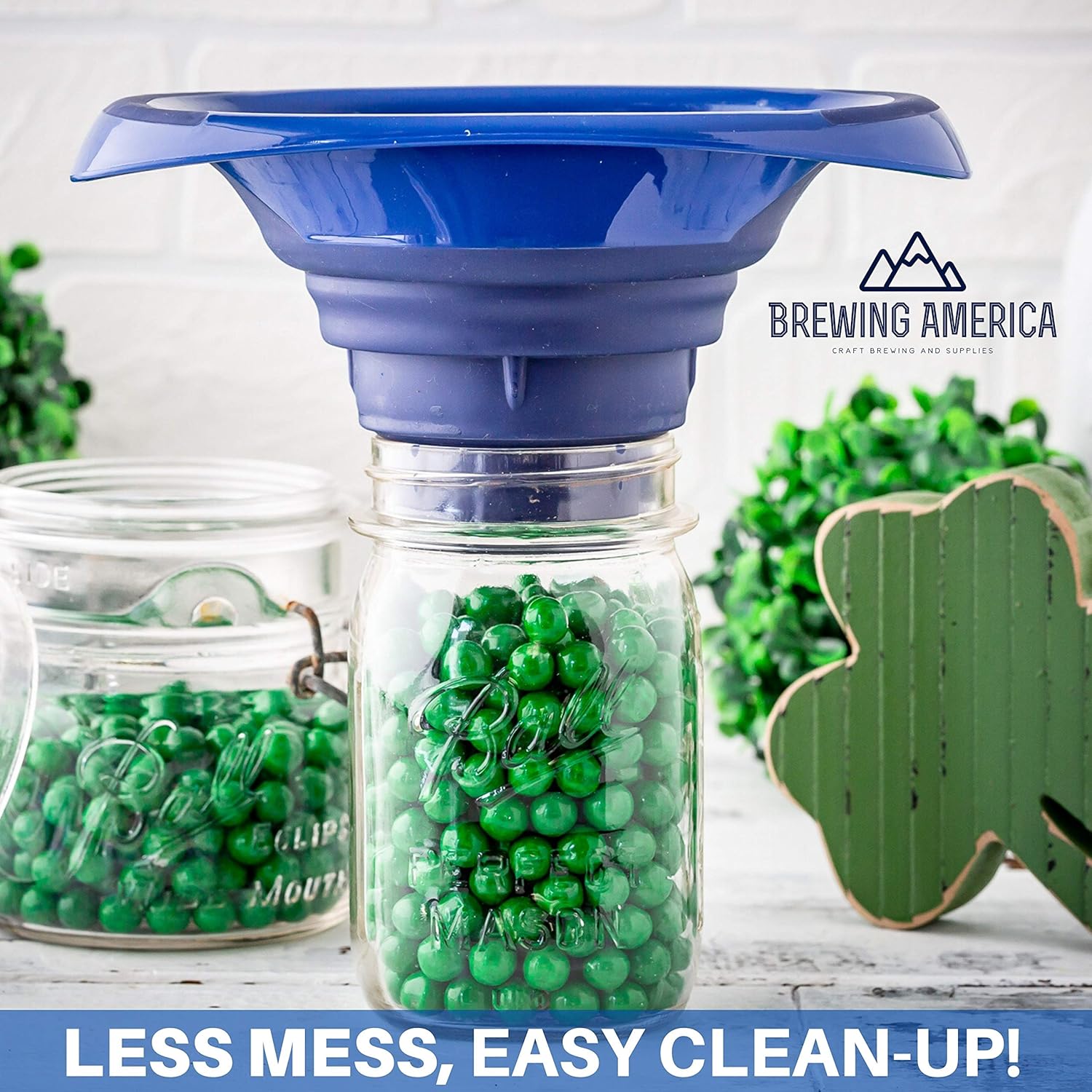 Kitchen Canning Funnel – Collapsible Silicone Food Funnel for Wide Mouth and Regular Mason Jars – Flexible Use for Coffee, Liquid, Jam, Cooking, Baking, Crafts - Blue