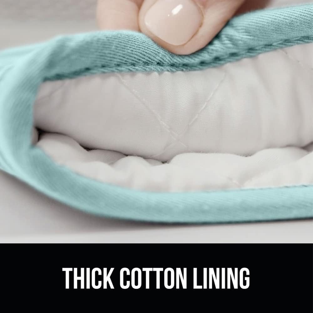 GORILLA GRIP BPA-Free Soft Silicone Oven Mitts, Heat Resistant and Waterproof Cooking Gloves, Thick Cotton Lining, Flexible Gripping for Baking Grilling, Kitchen Potholders Set of 2, 12.5x8.3, Mint