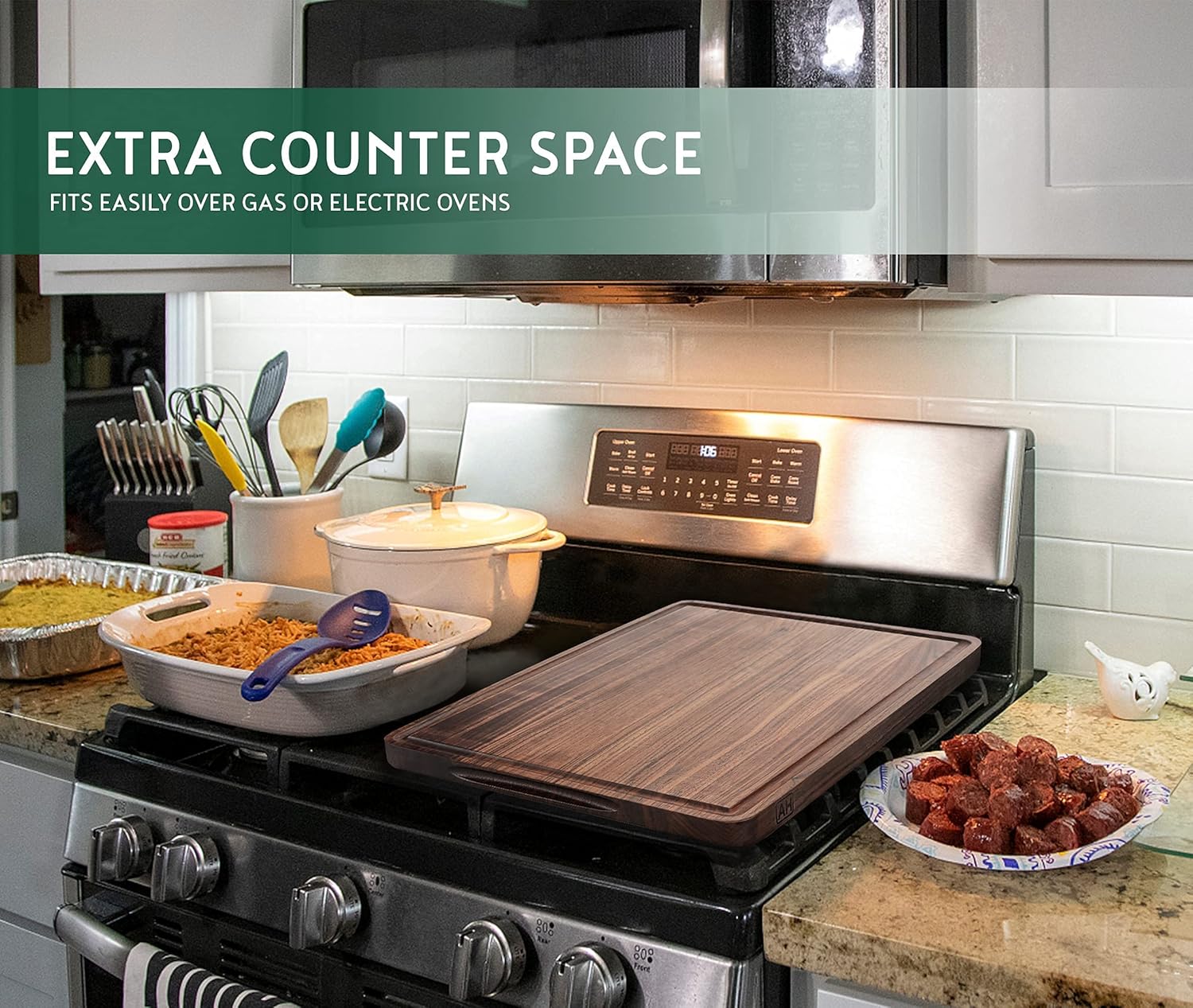 - REVERSIBLE, JUICE GROOVE, BUILD-IN HANDLES β These wooden cutting board feature a large smooth reversible surface for cutting different things separately. Wide and deep juice groove to catch excess liquid during food prep. And built-in handles for easy taking and moving. 5 sizes available to cover all your needs. Work perfect for carving grilled brisket, beef, pork, or ribs at barbecues, or as a cheese board, charcuterie board, serving tray.