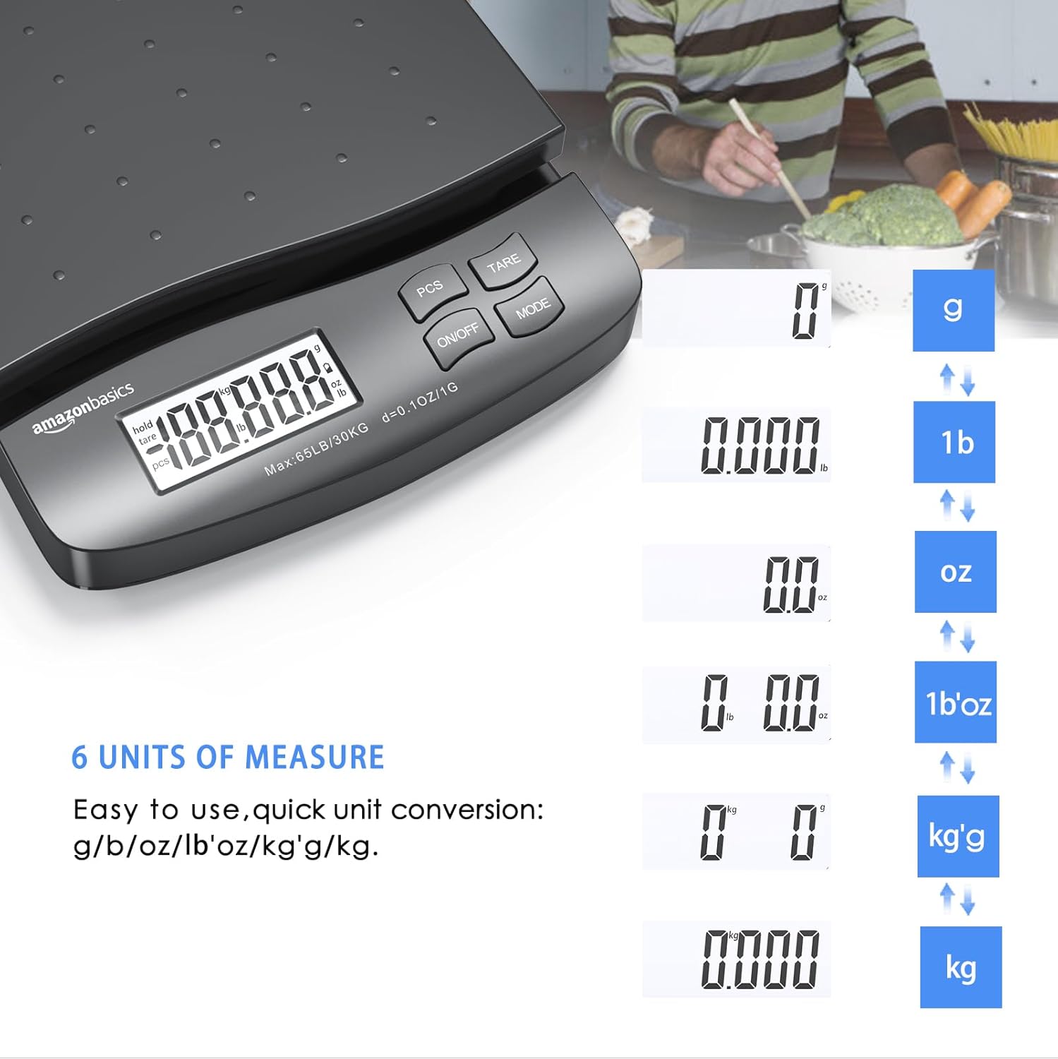 - Extra large LCD display for easy viewing; measuring units in ounces, pounds, g, and kg