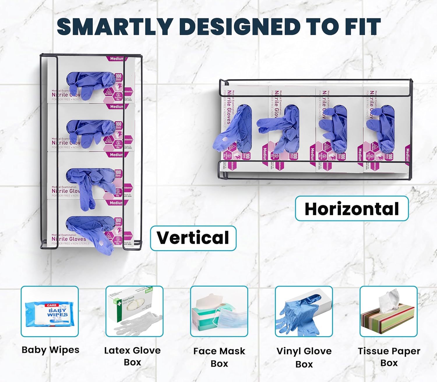Alpine Glove Holder for Wall Mount Latex Gloves - Wire Box Dispenser for Disposable Gloves, Tissues, Masks, Wipes & More - Fits 4 Boxes (Black)
