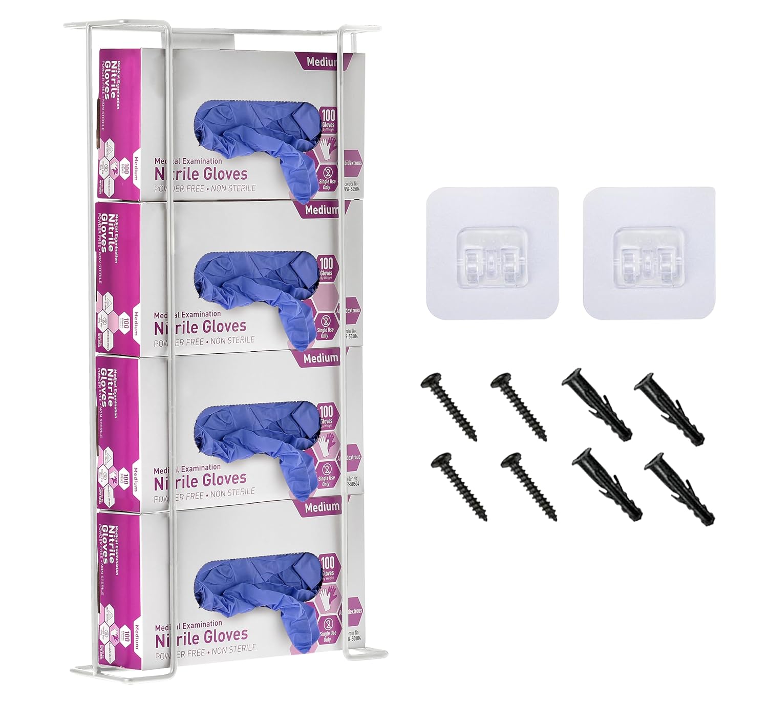 Alpine Glove Holder for Wall Mount - Latex Glove Holder Wire Glove Dispenser for Wall Disposable Glove Box & Tissue Box - Fits 4 Box (White)