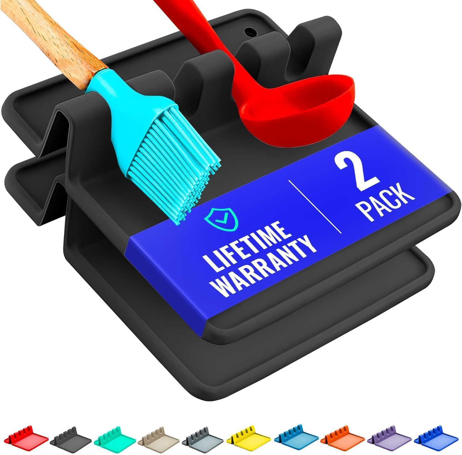 - MULTIPLE UTENSIL TYPES: Our kitchen counter spoon rest is the ideal choice for not only spoons, but tongs, ladles, spatulas, and more. A wonderful alternative to wasting paper plates or paper towels, this utensil rest is simply perfect for keeping everything separated when working with different ingredients. Each spoon rest can hold up to four cooking utensils at once- thereβs a spot for every piece of cookware you need.