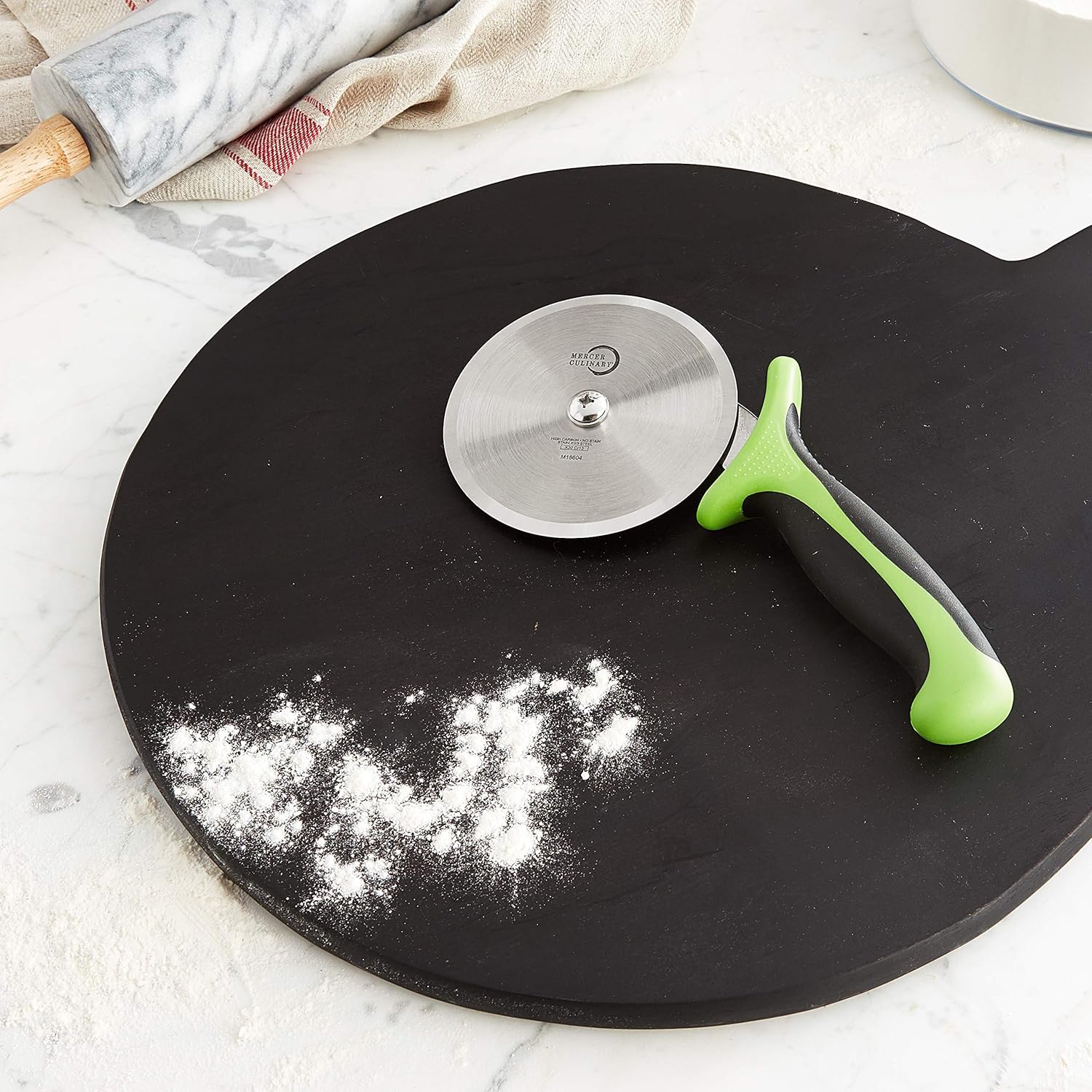 Mercer Culinary MillenniaPizza Cutter with Green Handle, 4 Inch Wheel, Stainless Steel