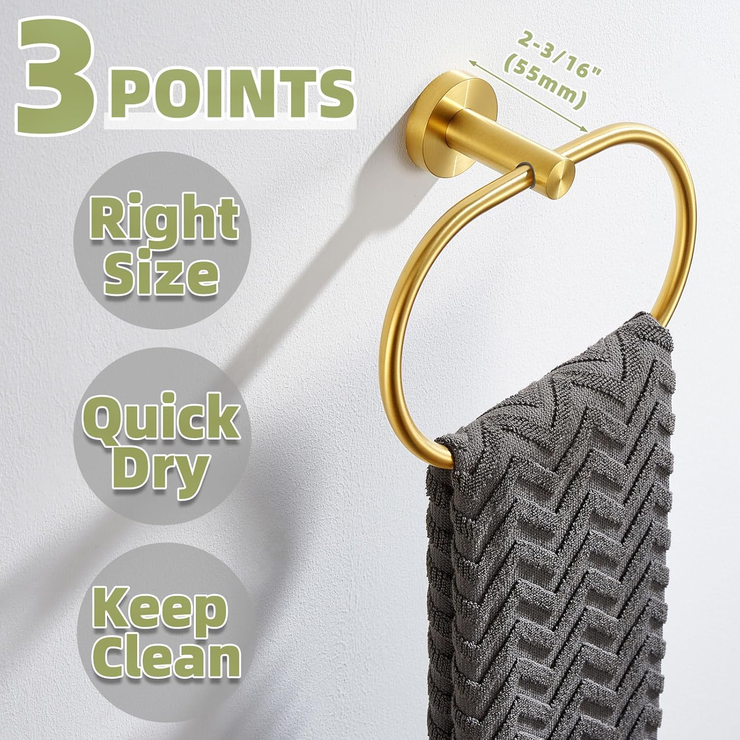 Bath Towel Ring Brushed Gold, APLusee 304 Stainless Steel Swivel Hand Towel Holder Dry Rack Near The Sink, Modern Bathroom Accessories