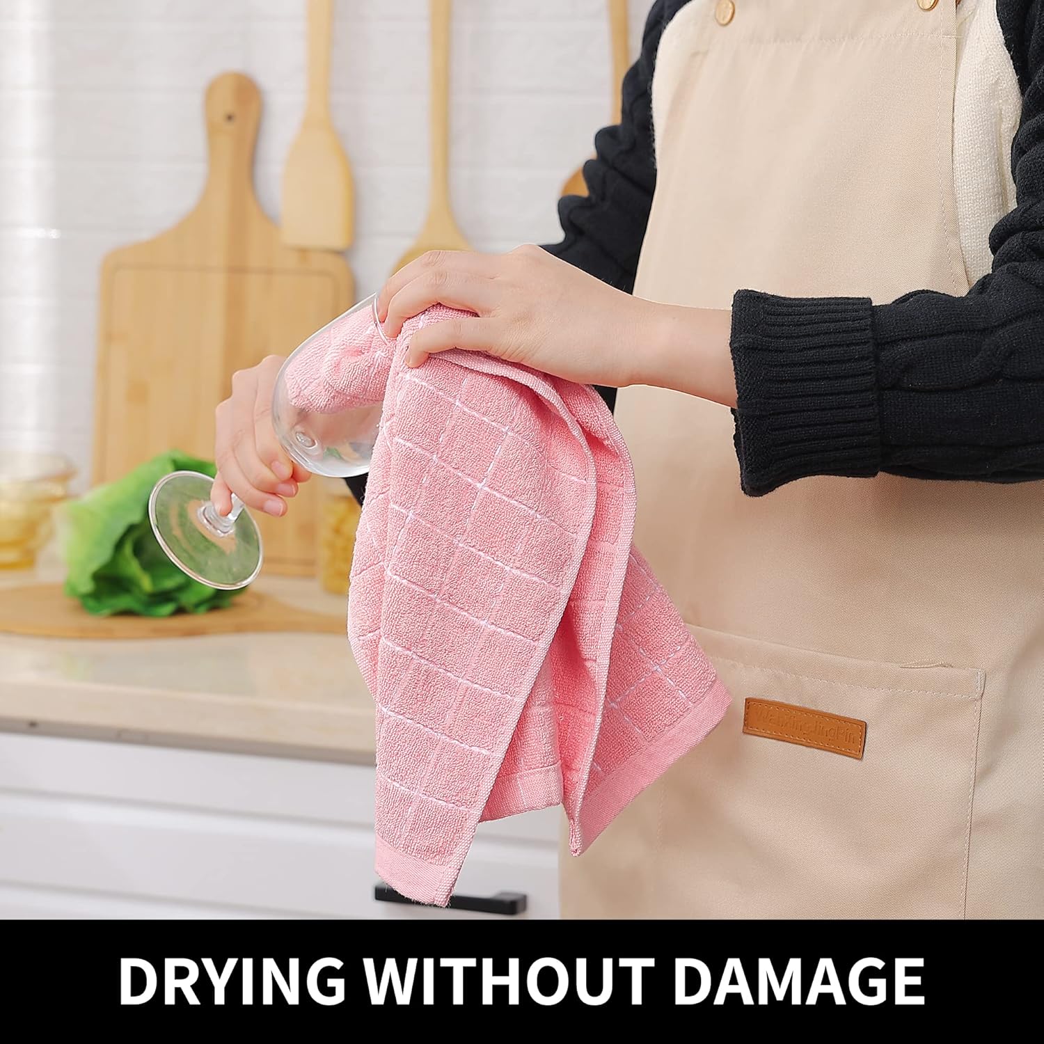 - Super Absorbent: These dish towels are designed with upgraded terry structure, are lightweight, highly absorbent, and dry quickly. They can easily absorb plenty of liquid or wipe oil stains