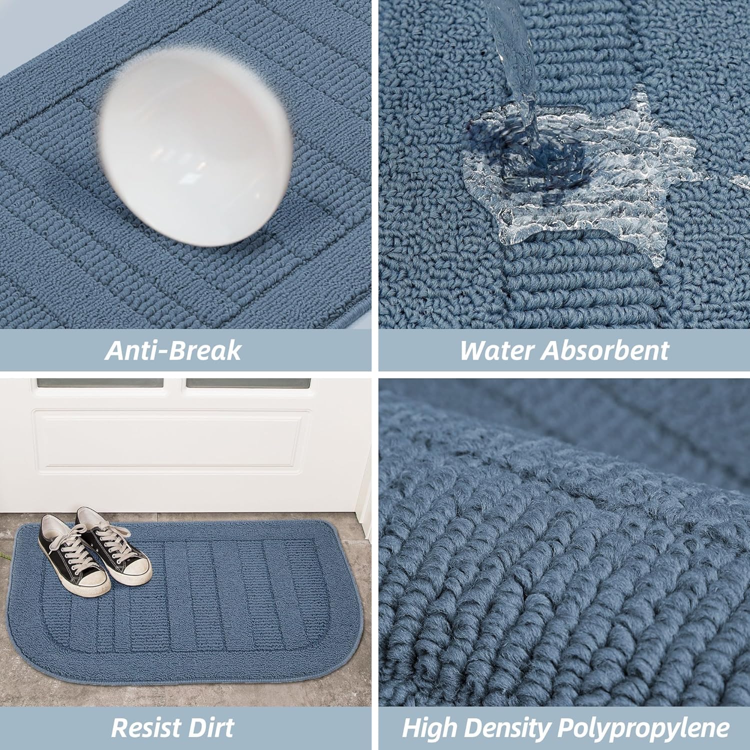 - Stain-resistant: Our kitchen floor mat is made of wear-resisting Polypropylene fibers. The tight sewing makes this kitchen mat set more durable. The rugs for kitchen with great water absorption and stain-resistant properties protect the floor from oil, dampness, sauces or food particles; the slightly raised polypropylene fabric helps to scrap off dirt, dust, grit, mud, sand.