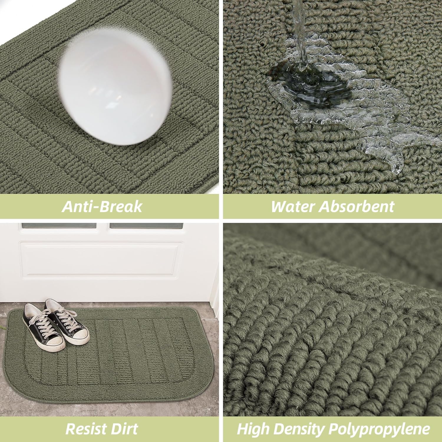 BEQHAUSE 30x18 Inch Kitchen Rug Mat Durable Kitchen Rugs Non-Slip Washable Absorbent Kitchen Mats for Floor Dirt-Resistant Semicircular Kitchen Mat (Green)