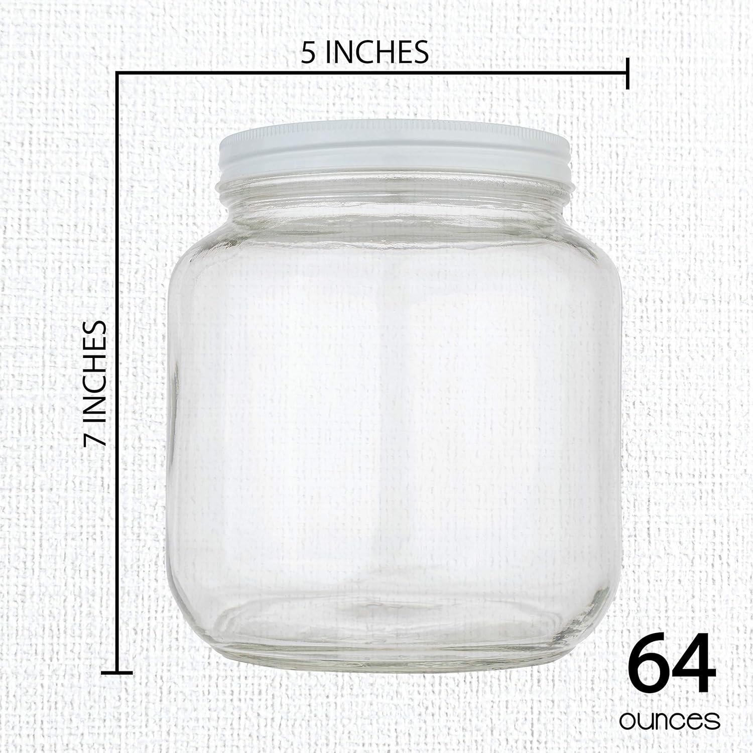 kitchentoolz Half Gallon Mason Jar Wide Mouth with Airtight Metal Lid - Safe for Fermenting Kombucha Kefir - Curing Pickling, Storing and Canning - BPA-Free Dishwasher Safe (White Lid, 4)
