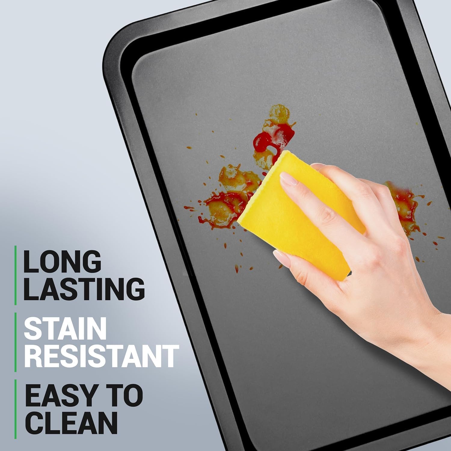 - EASY TO USE - Each sheet is designed with extra-wide, easy to hold handles that offer an outstanding grip when transferring from oven to surface. After each use, wash with dishwashing soap and warm water or pop them into a dishwasher for fast and easy cleaning. Store in a cool dry place for long-term endurance.