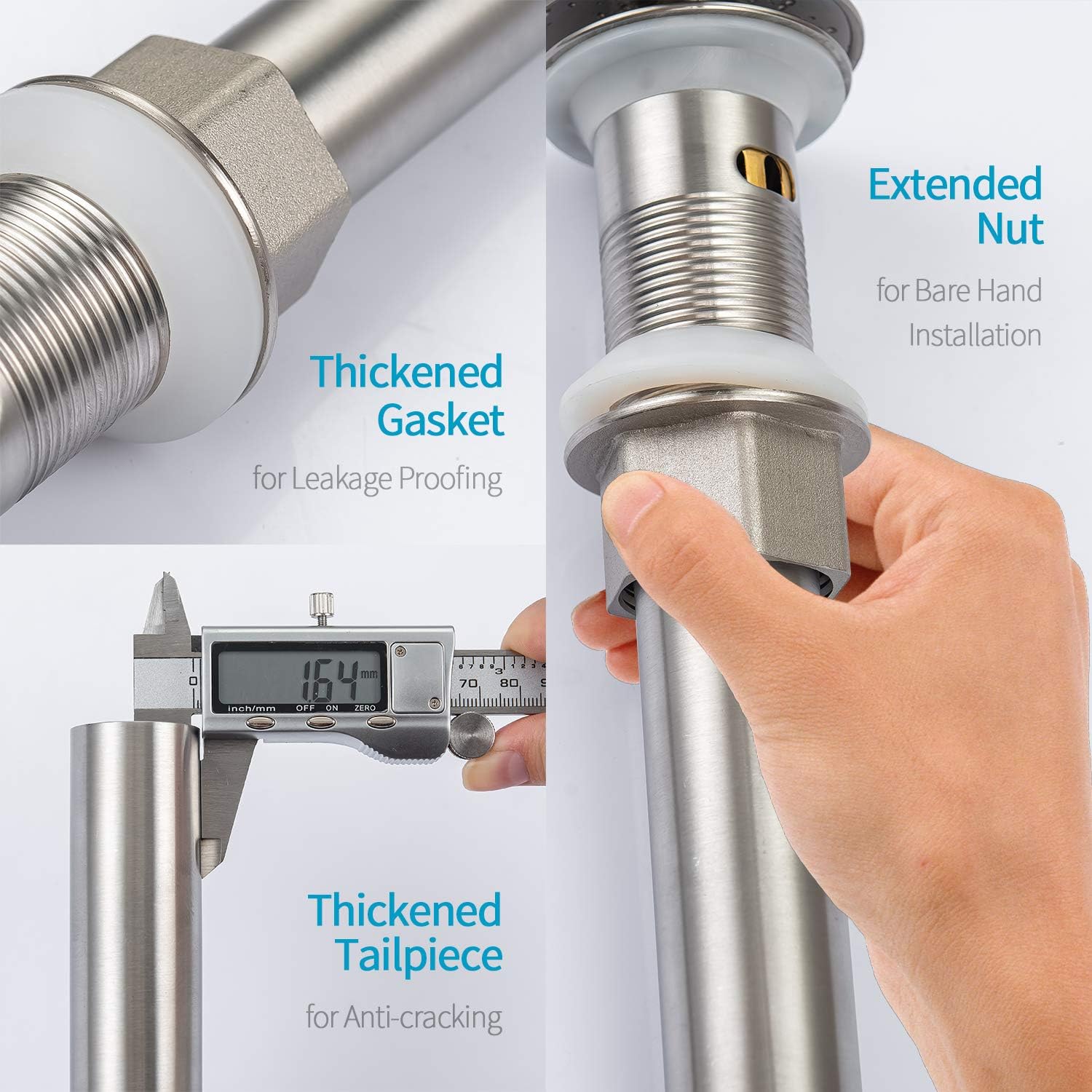 - 【MATERIAL】-Pop-up drain stopper, drain flange, threaded pipe are made from brass, tailpiece is constructed of thickened premium grade 304 stainless steel. All metal construction for maximum durability. Superior finish is corrosion & rust-resistant.