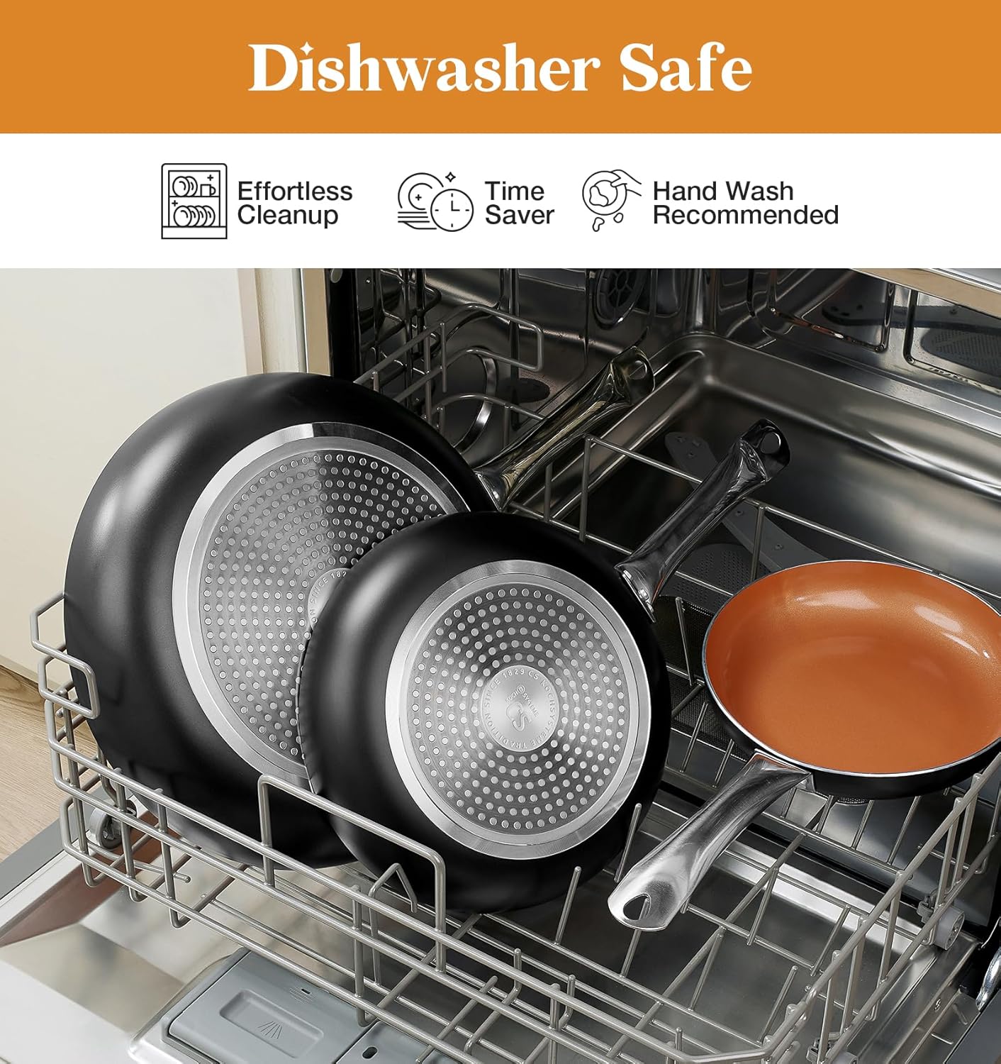 - [Dishwasher Safe, Oven Safe] - This nonstick frying pan is dishwasher safe (hand wash is recommended). Oven-safe to 450F. Package Includes: 1 x 10 Inch copper pans non stick with lid.